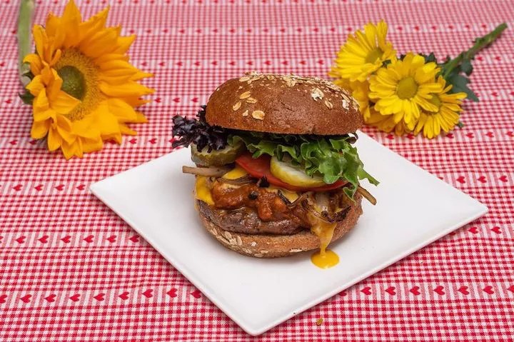 8024 Spring Valley Road If you’ve sampled Nuno’s plant-based tacos, quesadillas or Oatly shakes, it’ll come as no surprise that this hole-in-the-wall shop serves up a pretty mean vegan burger too. Try the Mexican chopped cheeseburger, stuffed with vegan bistec ranchero protein, grilled onions and fried jalapenos. A blanket of vegan cheese adds another colorful layer to the two-patty wonder. The Michael Scott Fishless burger has a vegan fish cutlet topped with homemade tartar sauce. Barbecue, American ham and fried chicken burgers spruce up the menu as well. They’re all nested inside Nuno’s signature buttery brioche buns. TLC’s vegan burger drips with vegan chili and cheese. Anisha Holla