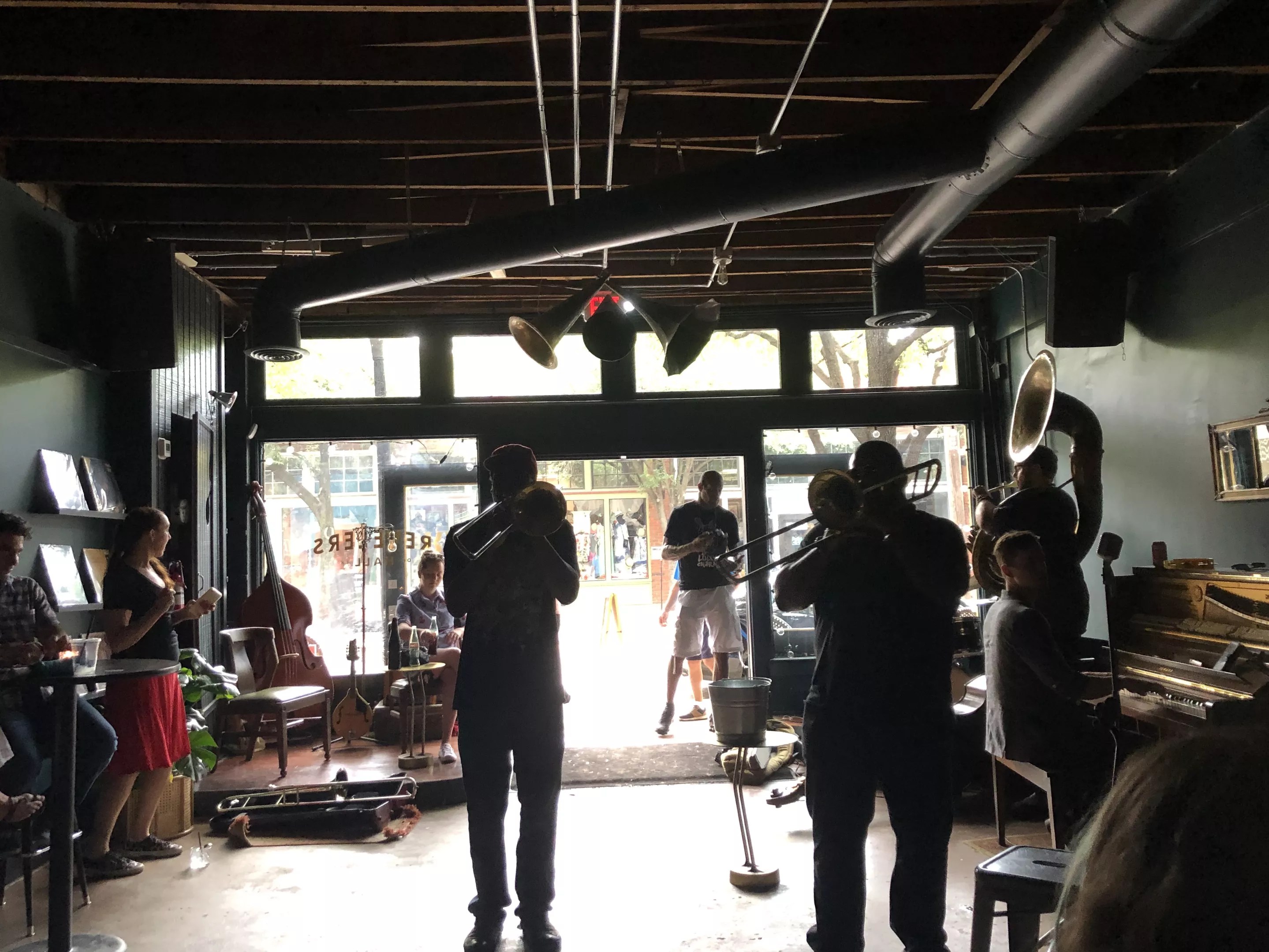 Three weeks ago, when a massive storm blew through Dallas on an otherwise quiet Sunday afternoon, the winds blew us into Reveler’s Hall, the new New Orleans-style Bishop Arts jazz bar from the folks behind AJ Vagabonds and Oddfellows. Like much of the block, the bar had lost power, but Unfaded Brass Band was still playing its heart out as candles flickered and people passed 20s over the bar in exchange for Negronis and old fashioneds. I’m not sure if it was the perfect cocktails or the multiple trombones screaming in the shadows, but this was the 12th time – out of approximately 200 – that I quietly cried about all the beautiful things I’m giving up to leave Dallas.