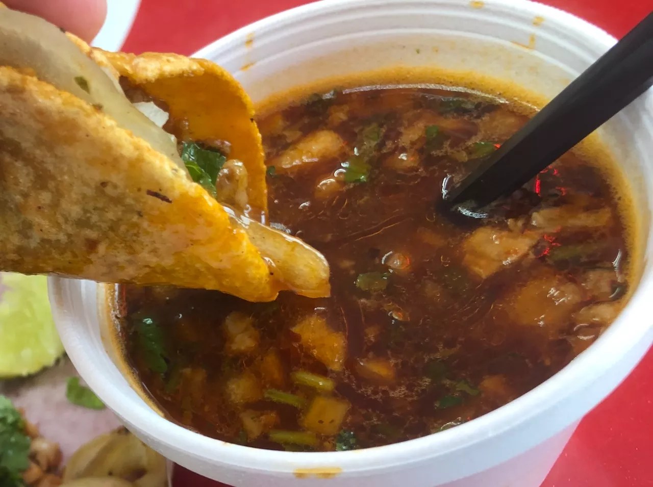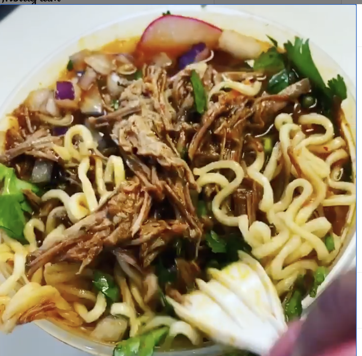 Ramirez, who is constantly experimenting, also added ramen to his menu by way of Nissin Hot & Spicy bowls – not a dish he created by any means. He uses the boiling broth to cook the noodles then adds brisket, cilantro, onions and lime. Birria-inspired ramen Caliscience IG