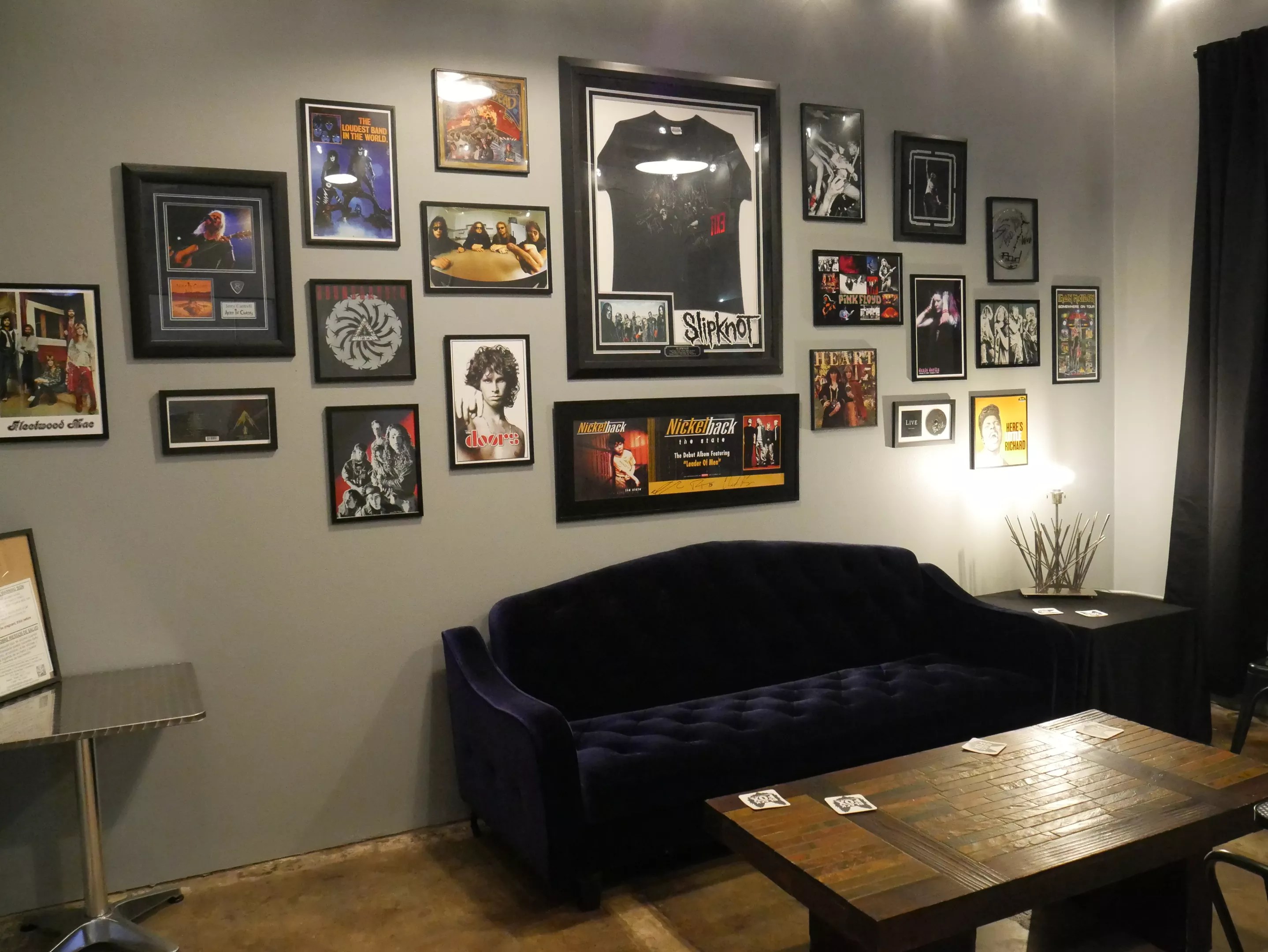 When Howling Mutt Brewery announced it was closing, Velasco told them to hold off before selling all their equipment. They talked, and Velasco bought a lot of their brewing equipment. He added new seating, a large mural of the Black Fox logo and a wall full of band posters, such as Slipknot, Pink Floyd and The Doors. The memorabilia, much of it signed, was a collection meant to go in his house. But when Velasco’s wife, Emily, saw the big, empty wall, she suggested they make it a music room.