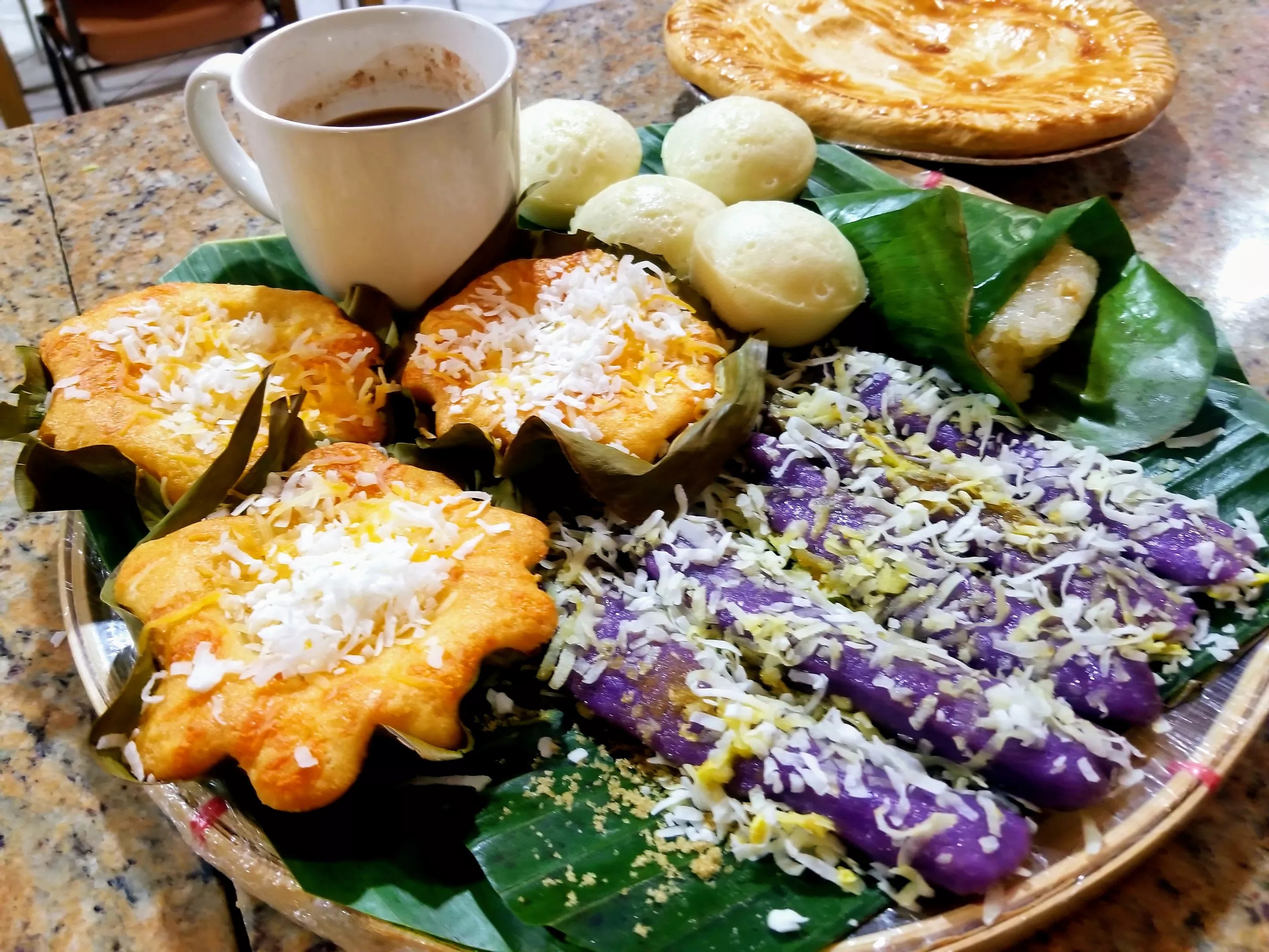 Desserts galore: bibingka, champurrado, buko pie, puto rice cakes and puto bumbong (Photo by Vilma Rice)