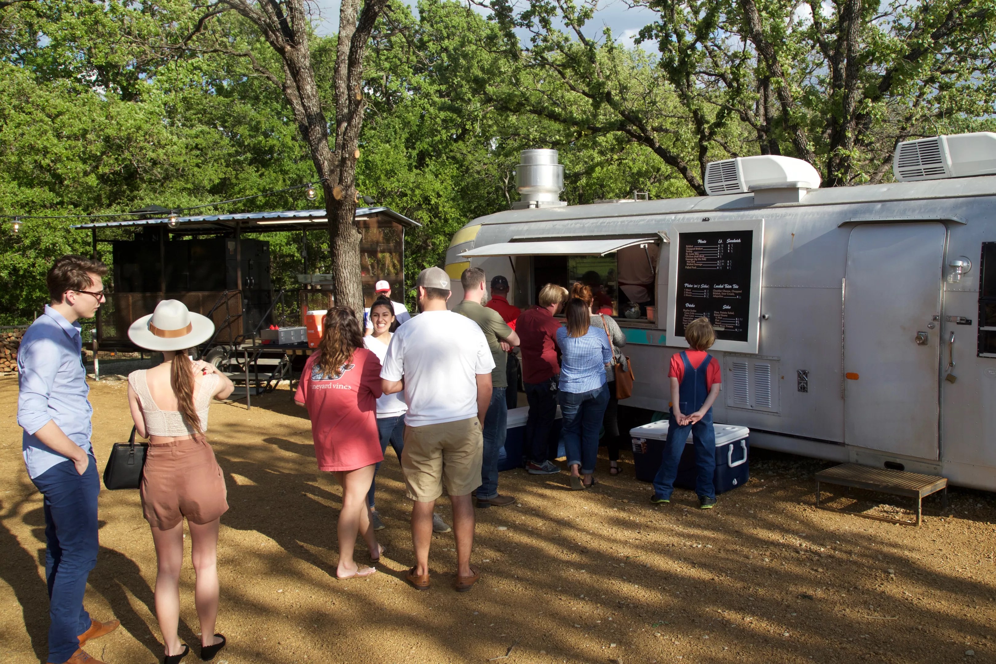 Described as a “barbecue outpost in the trees,” Bumbershoot’s promises all the great barbecue staples of Texas. Upon first visit, you’ll see that Bumbershoot really is tucked into the treeline in a field behind Earl’s 377. A small shed provides cover for their Oyler smoker, flanked by stacks of wood on one side and a vintage travel trailer on the other. Food orders are placed at the window of the trailer.