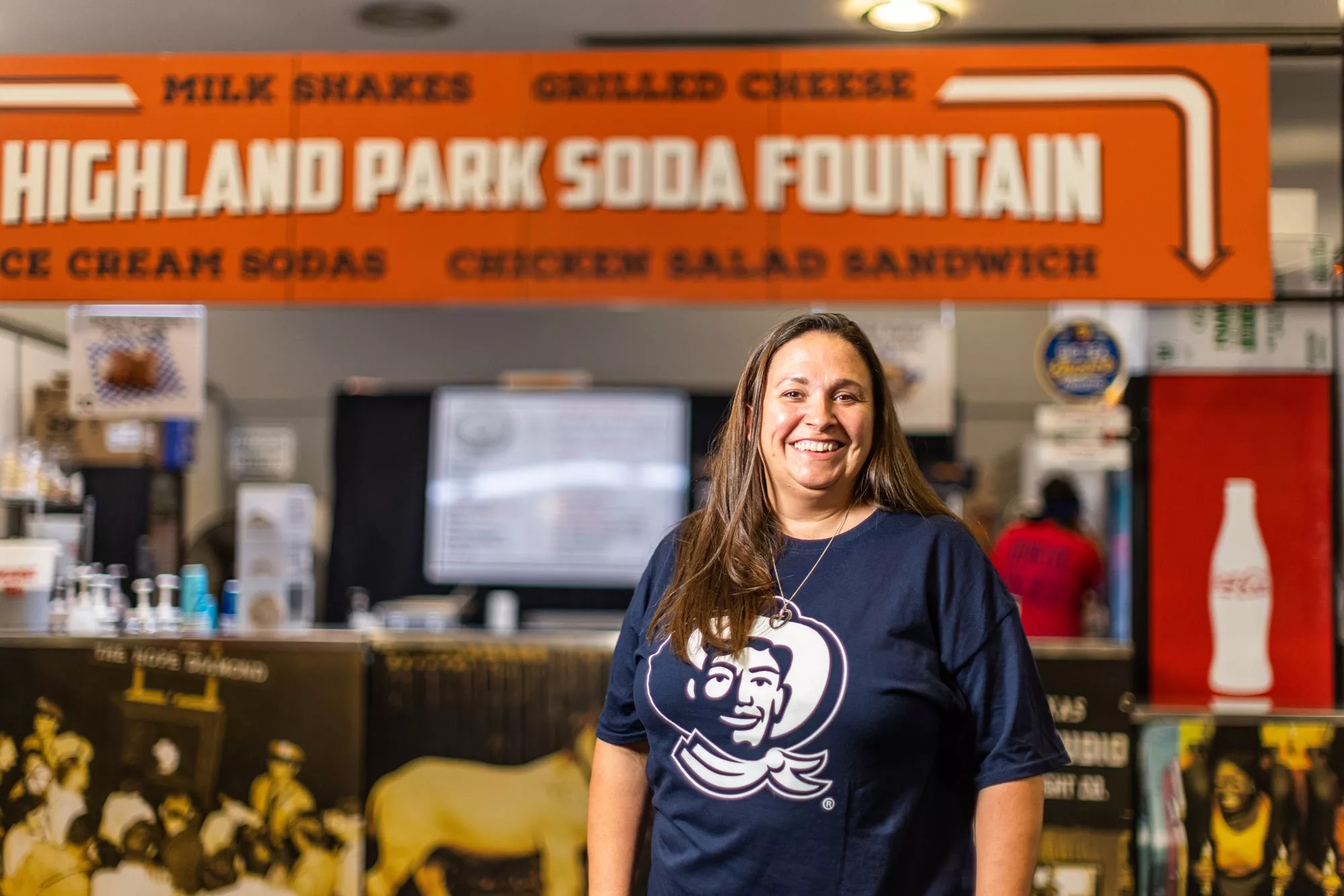 Michelle Edwards operates the Highland Park Soda Fountain at the fair.