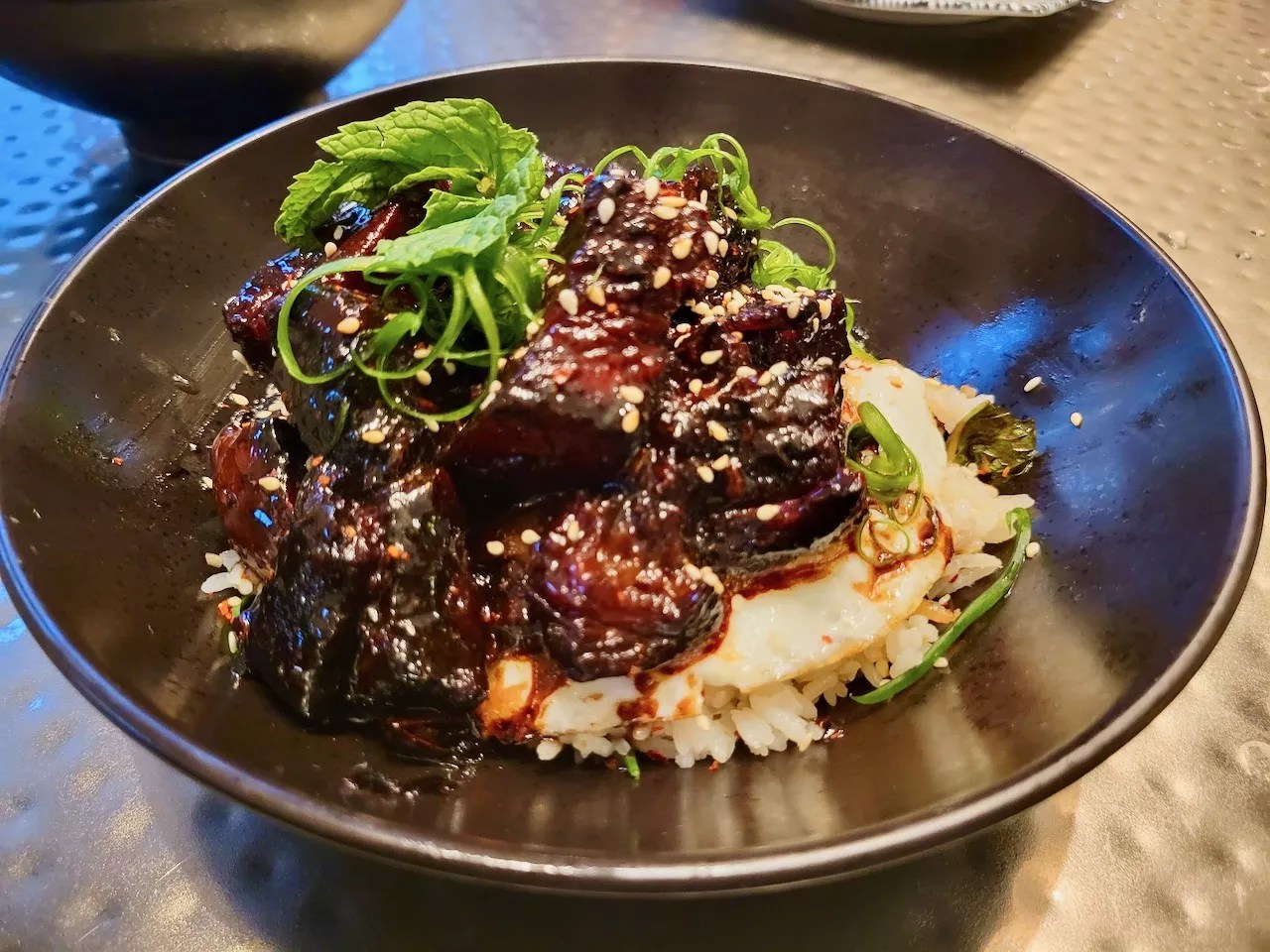 We wanted to try items from different regions, so we started with the Egyptian spiced lamb skewers ($15), which are probably best shared with others. These massive scrumptious spheres are made with dukkha spiced ground lamb, sesame seeds, pink peppercorn and pork, even though the latter is not traditional meat found in lamb dishes. These balls of lamb come with a small smear of mild labneh sauce, which is a Middle Eastern cheese made from strained yogurt. The lamb was cooked exceptionally well for the Texas-size portion, we just wish there was more of that savory sauce to accompany it.