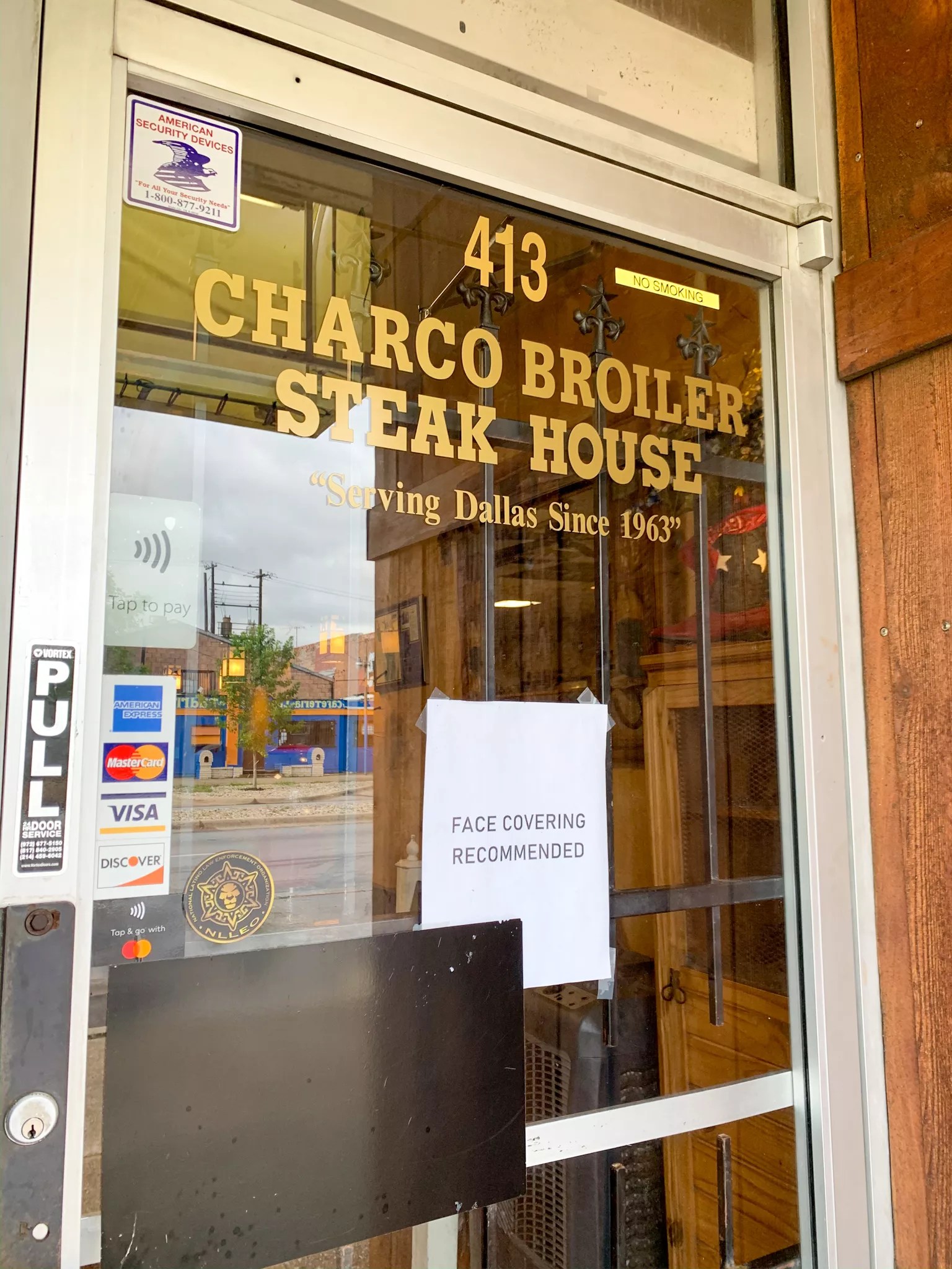 The notable fixture’s not far from where, in Normal Times, we could sit at El Ranchito for Chorizo y Menudo (the monthly political event, not just the plates of food). But now we don’t, and if we’re going into the Hereford-topped Charco Broiler, we’re doing so with masks (they insist) and taking the food to go in Styrofoam containers.