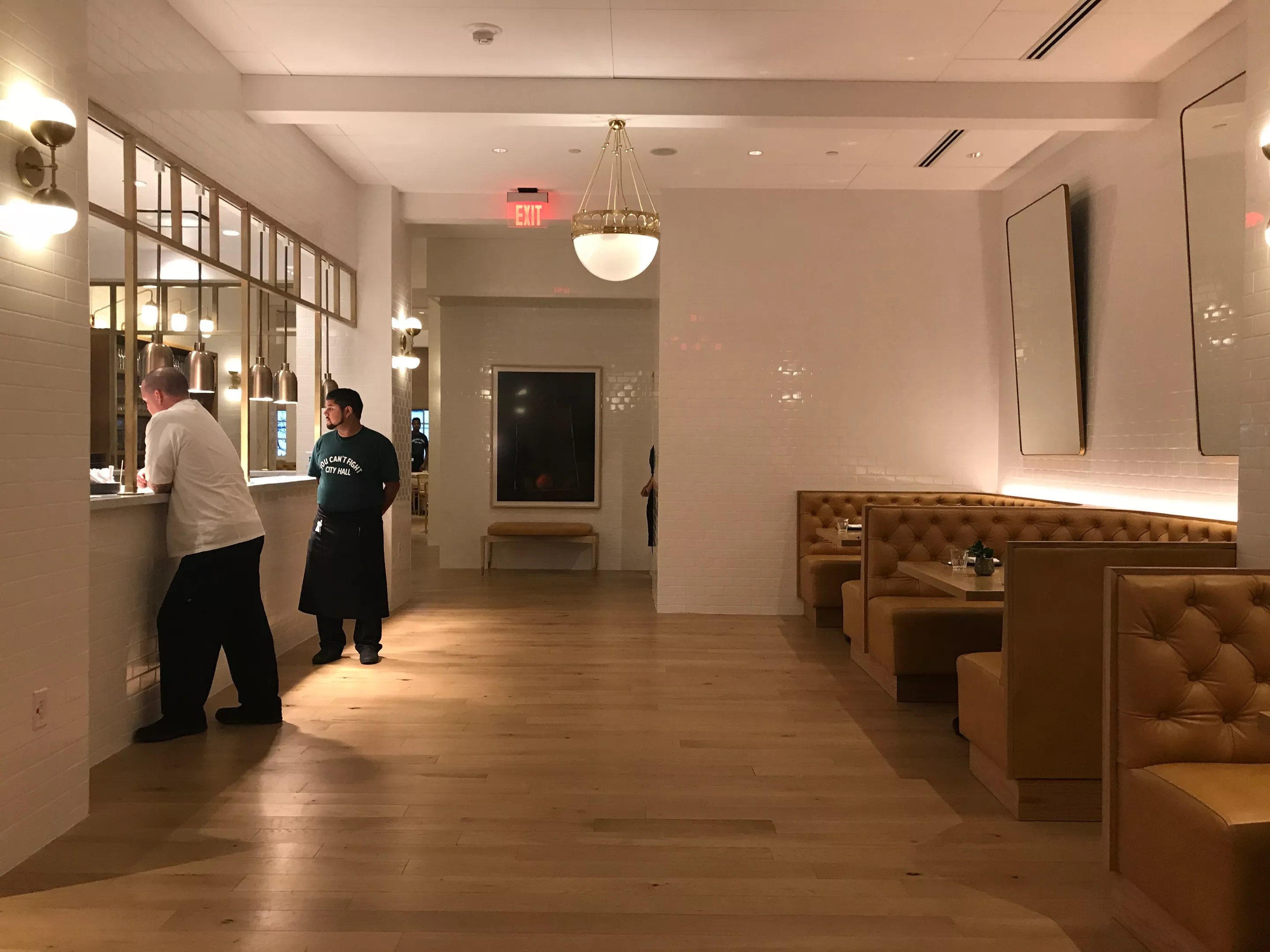 This week, the Adolphus unveiled a new restaurant at the hotel: City Hall Bistro, a Southern European-style bistro with an emphasis on shared plates. The sizable restaurant’s build-out riffs on the same design touches you’ll see at just about every new restaurant opening right now in Dallas: white subway tile, an open kitchen, metallic accents and a neutral color palate. The Adolphus is hoping that the new restaurant – open for breakfast, lunch and dinner – along with the small lobby bar and forthcoming reimagined French Room, will make the hotel a food and drink destination downtown.