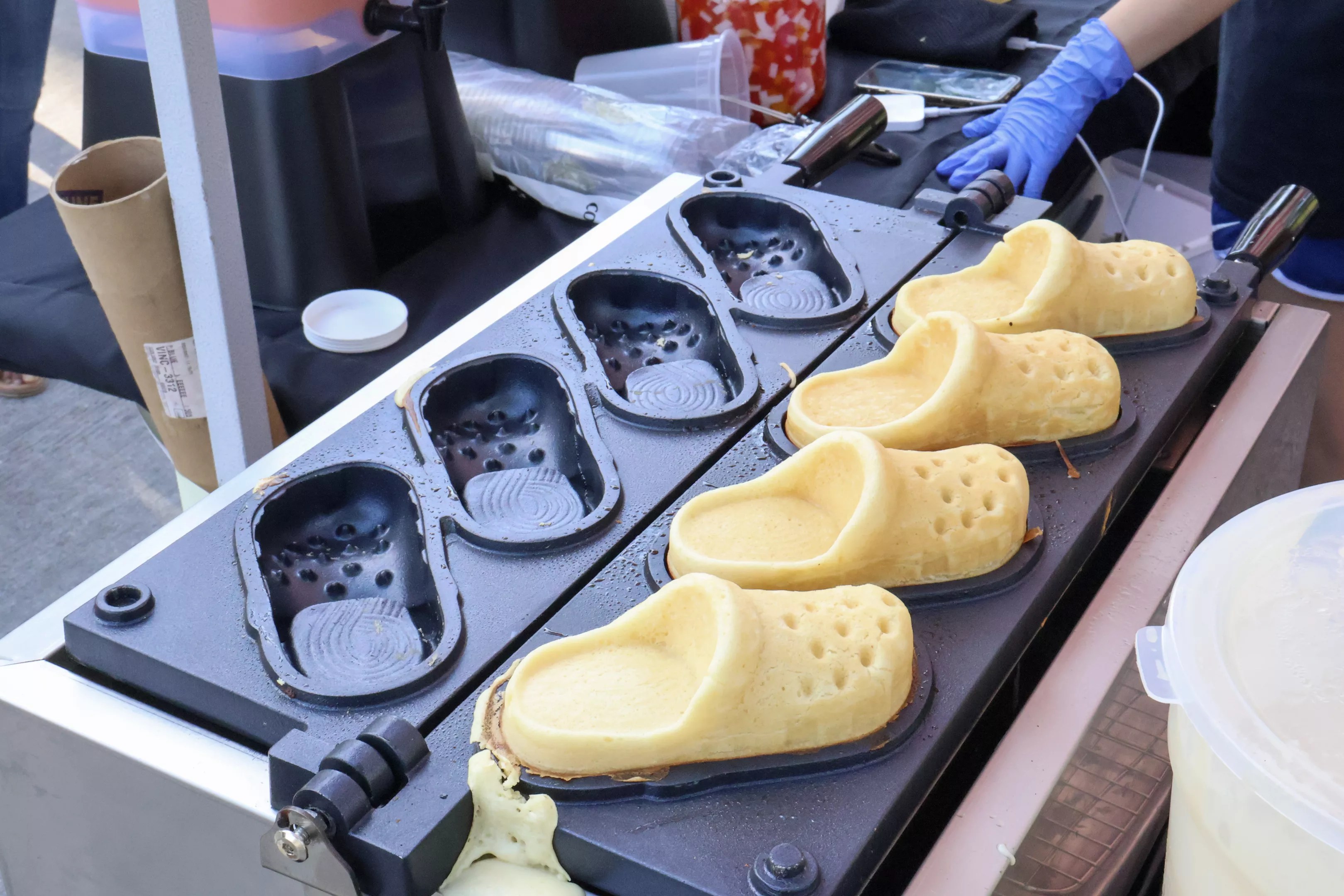 A recent addition to their menu is a Croc-fle, which is a waffle shaped like a Croc shoe (think: taiyaki); thanks to some family in Vietnam, they were able to acquire the Croc-fle making machine that they first saw in a viral TikTok. They even give away Croc jibbitz with the purchase of a Croc-fle. You can get your croc-fle stuffed with mozzarella, cookies and cream cheesecake or cookie butter cheesecake.