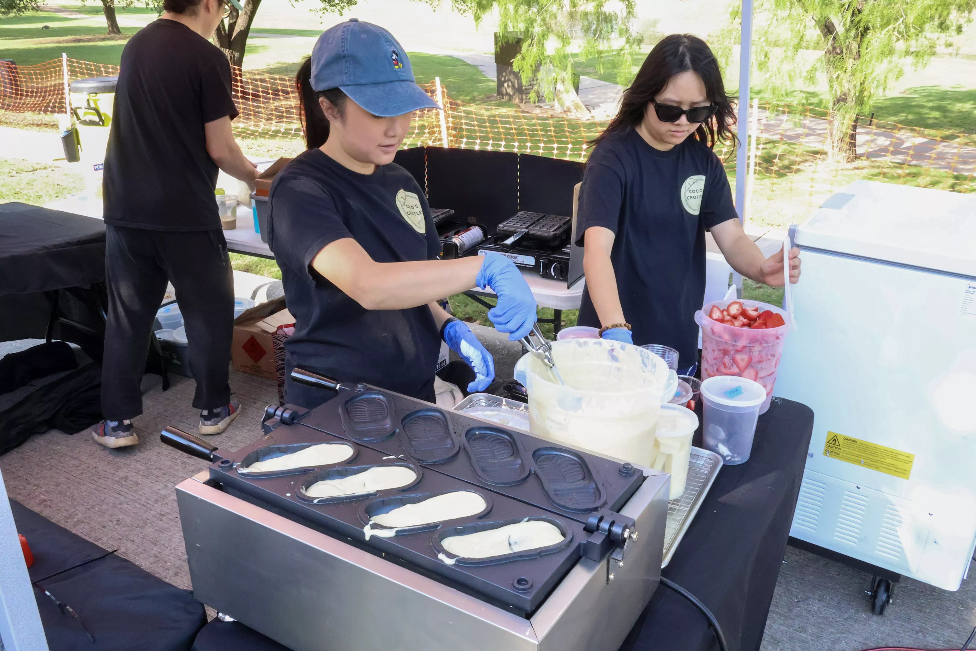 “I love the butter and flakiness of a croissant, and I saw that people in Korea were making croffles, and I was like, ‘You know what, let me try,'” Nguyen says. She bought a waffle press and started making desserts.