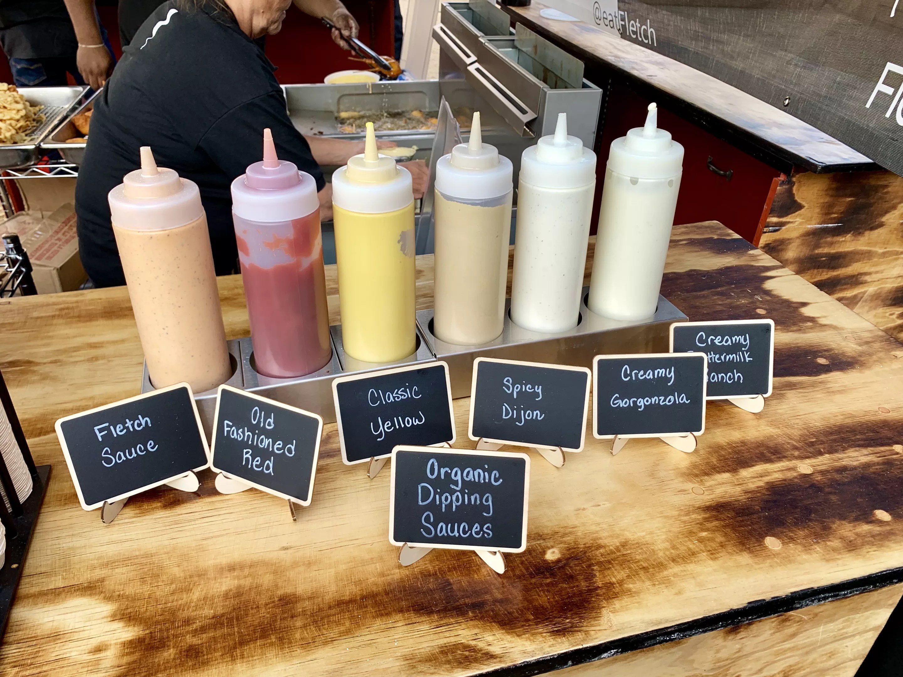 Stand down, mustard purists: Fletch corn dogs will come with a variety of sauce options.