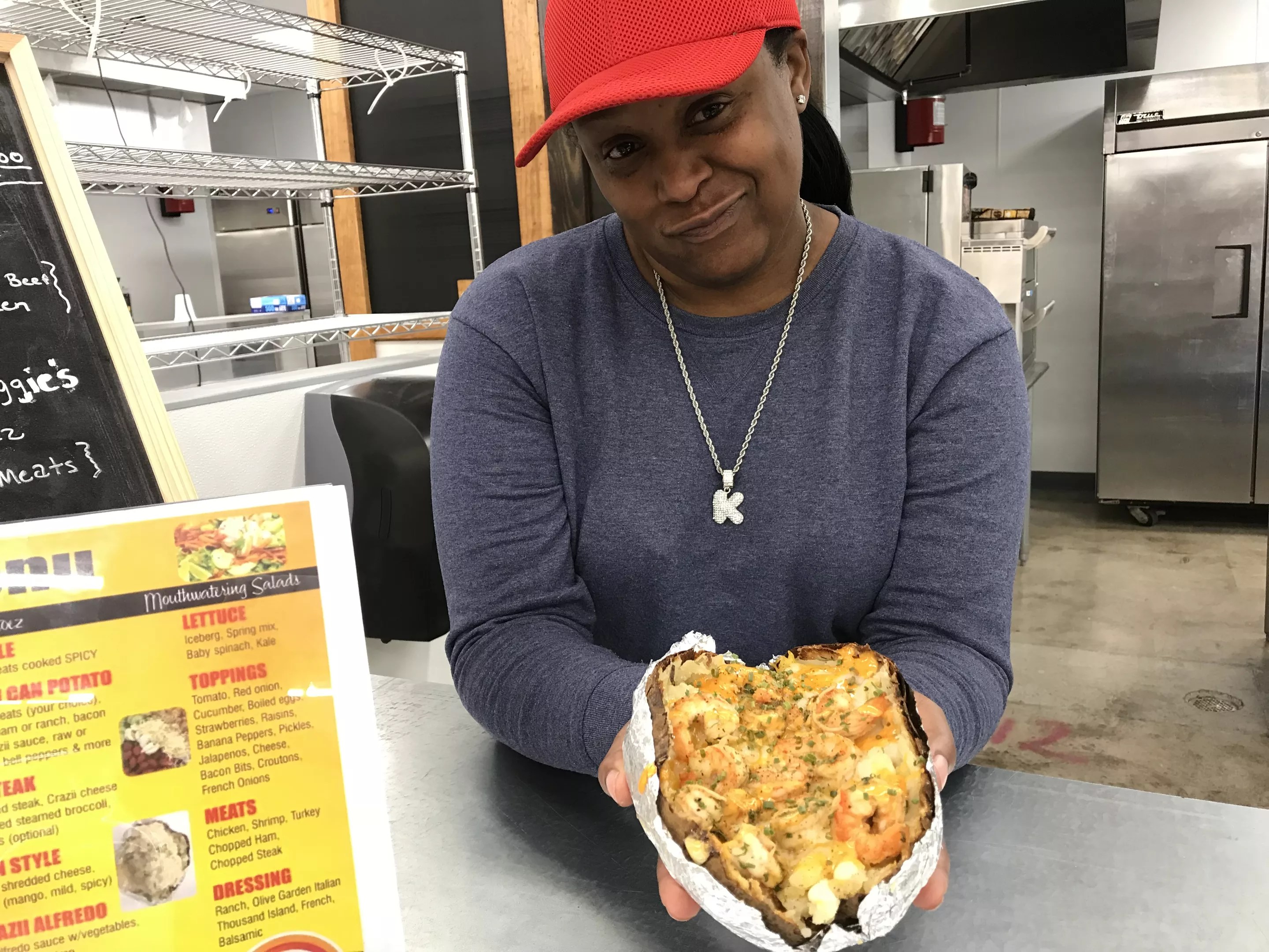 On a cold and rainy afternoon, workers put the finishing touches on countertops and painted walls ahead of the grand opening of the Grow Deoto Market Place, taking place Saturday Oct, 20. Aside from the vegan hot spot Peace, Love & Eatz, another eatery is bringing in appetites near and far. And they specialize in one thing: potatoes. And at Crazii Potatoez, we’re not talking about a little extra bacon and chives.