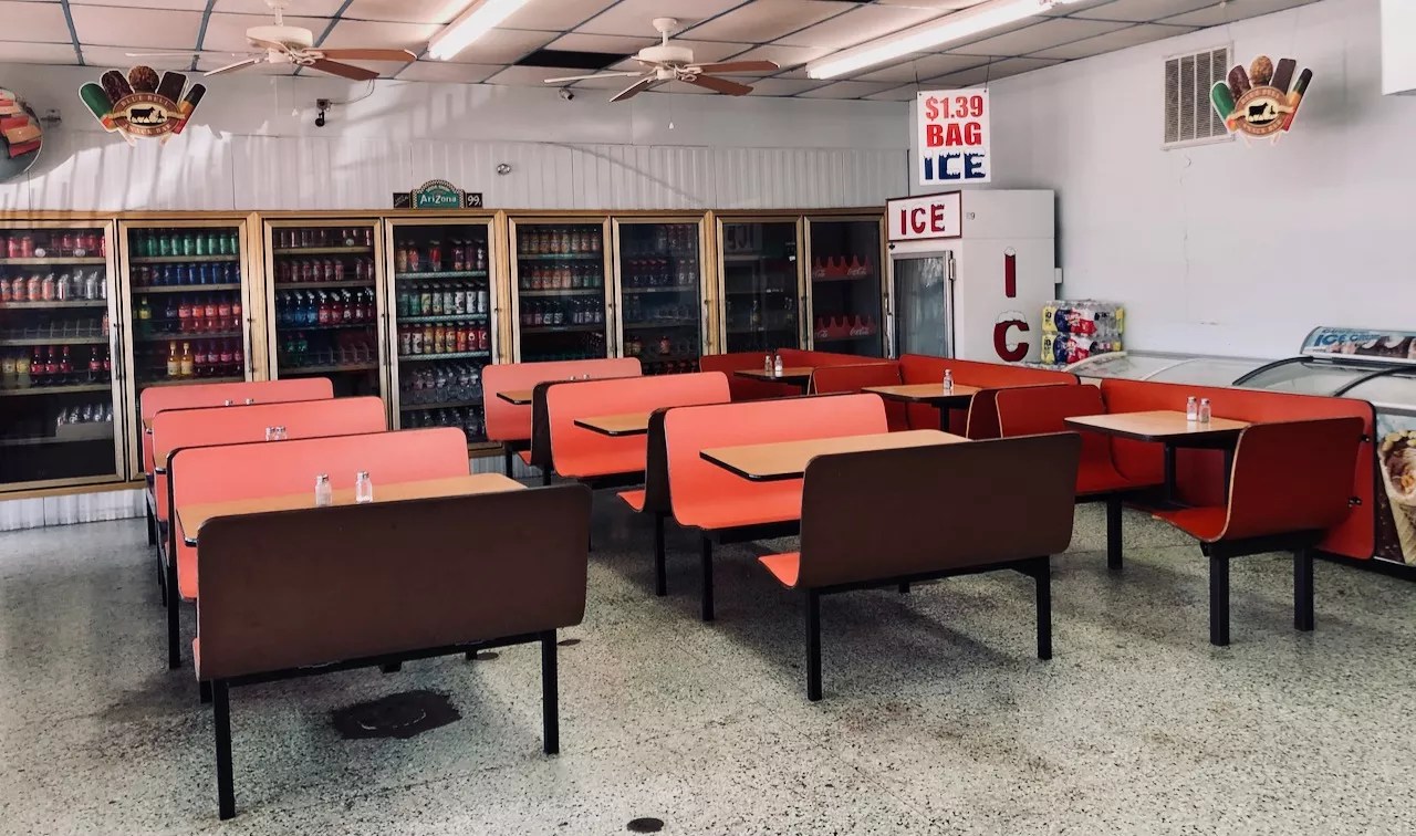 Originally, Crown Grocery and Deli was a convenience store and deli, but four years ago, Dalgamouni took out the grocery component because that side of the business just wasn’t worth it. Now there are about a dozen booths in front of the coolers and, otherwise, it’s clean and simple. There’s a Blue Bell ice cream case, plus a small rack of candy and chips at the front of the store.