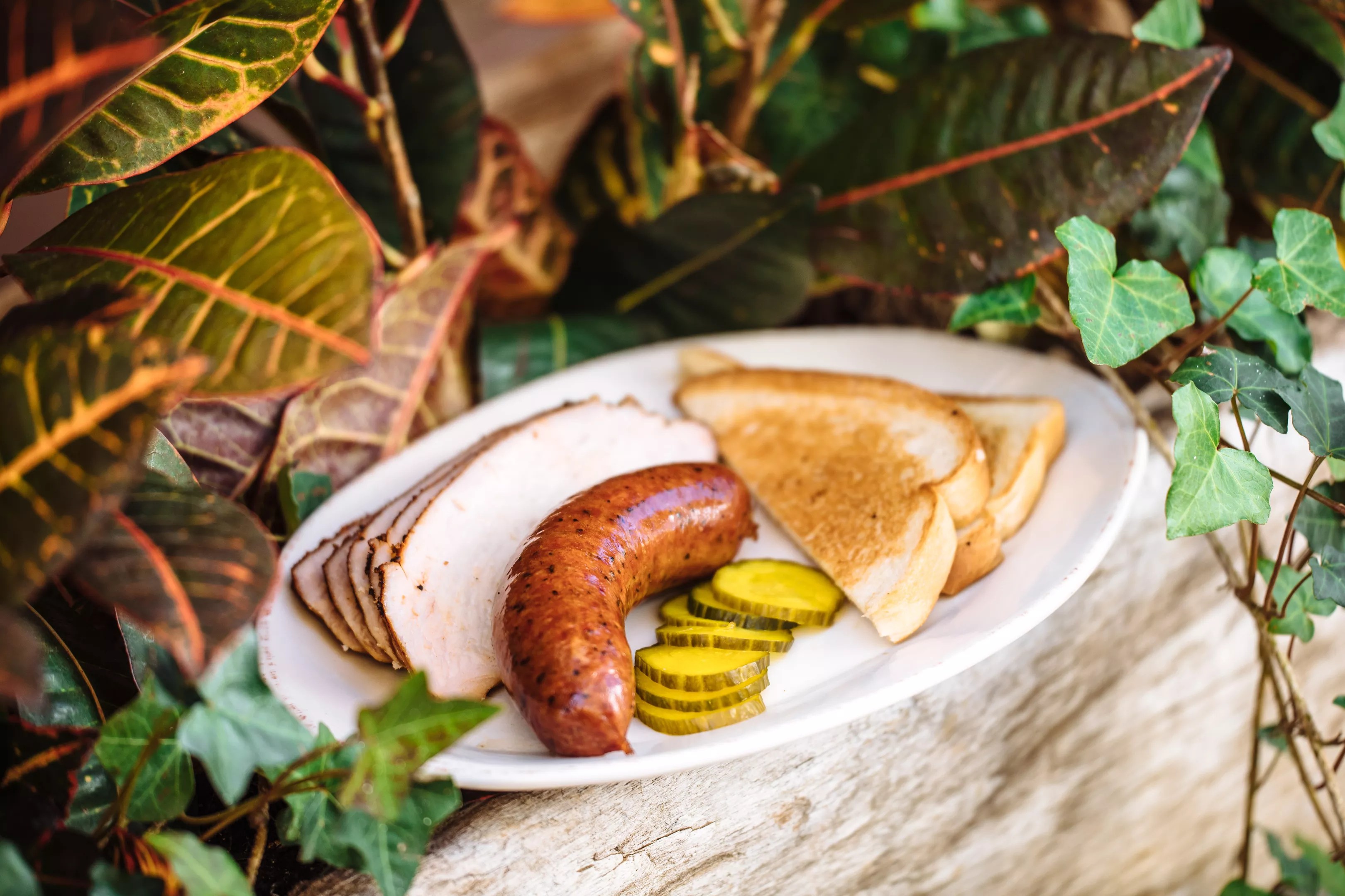 Ferris Wheelers A two-meat plate at Smoky Rose on the restaurant’s gorgeous garden patio. Kathy Tran