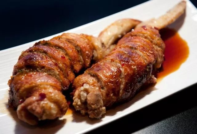 The “Fat Chicken Wings” at Fat Chicken (6 for $12) They may not look like wings, but they’re the porchetta-version of this classic football food. Courtesy Sakhuu Thai