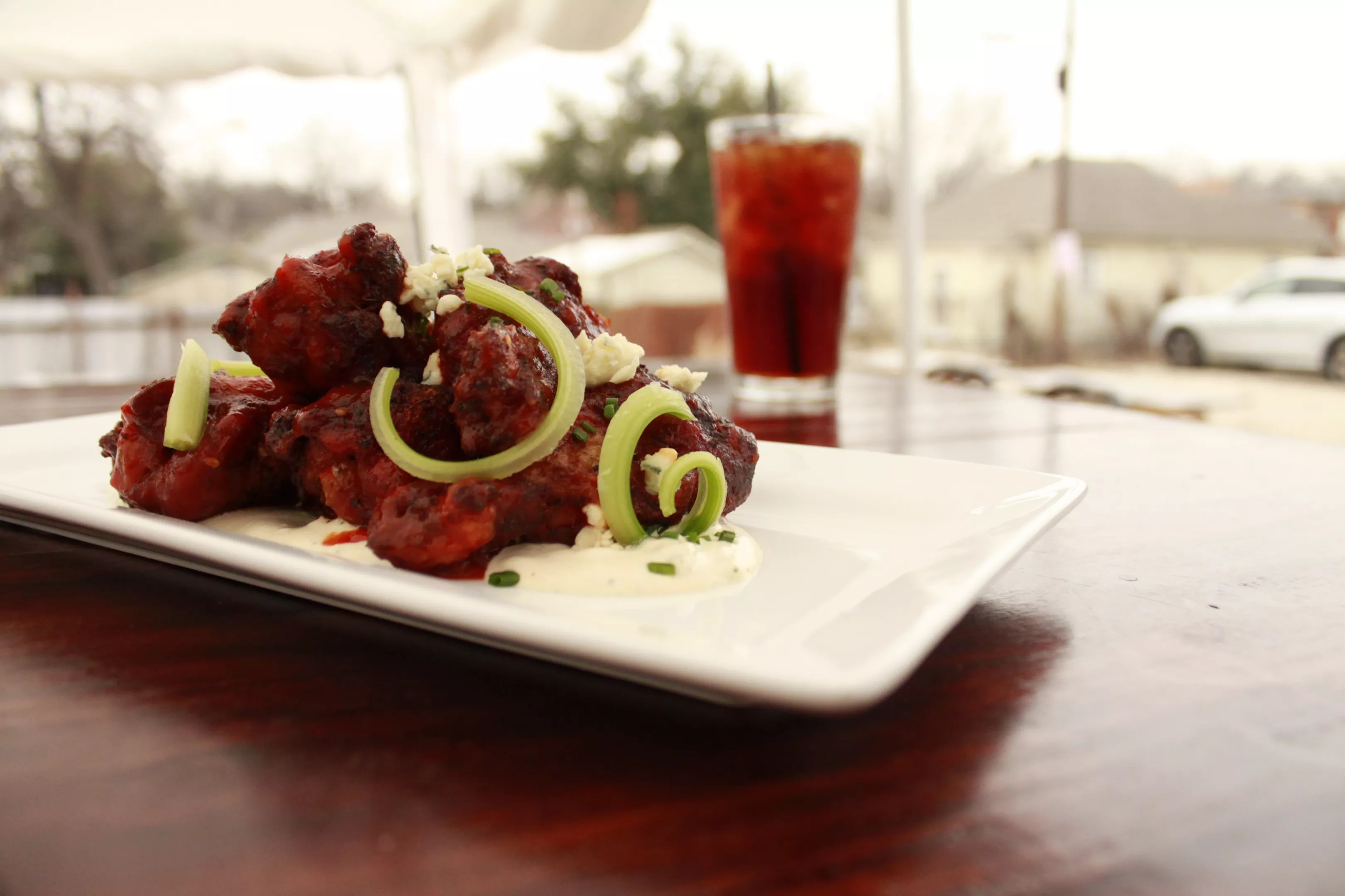 One of the best bar snacks in the city is the sauced wings at Oak Cliff’s tin tavern. Crags of blue cheese top their wall-to-wall sauced wings. They arrive the hue of a camp fire that’s smoldering, a top secret sauce of garlic, beer, brown sugar and a hammer or two of Frank’s Red Hot. “We had a rival restaurant once try to poach our kitchen staff to find out how we make these,” says owner Meri Dahlke. Fine dices of green onions and celery cut through the richness. These are real, pre-football-tasting tavern wings (they’re drumsticks that behave like wings) On Tuesdays, you can get wings and a beer for 10 bucks.