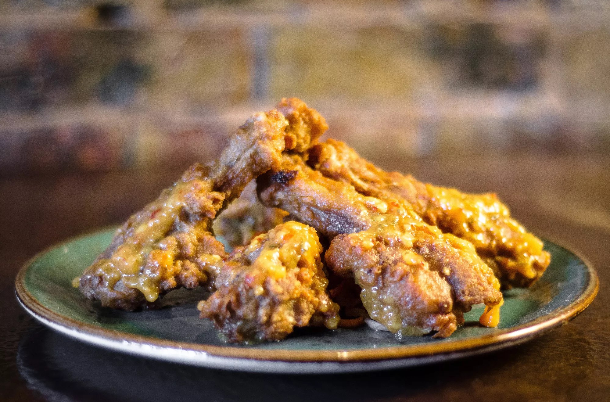 The Thai Chicken Wings (Peek Gai Nam Daeng) at Malai Kitchen $6 These duck drums simmer in duck fat, salt and sugar. They’re giving a breading of wheat flour and cornstarch, then fried. Armoury D.E.