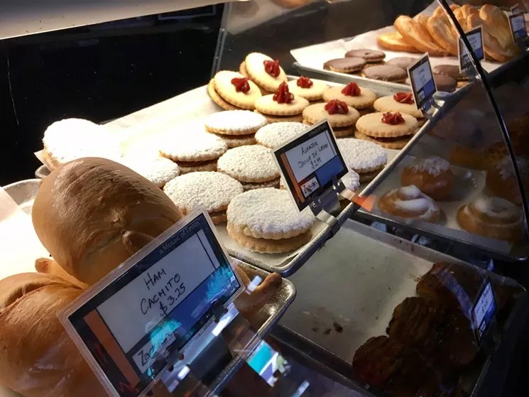 Zaguan’s baked goods case is filled with Latin American treats both savory and sweet.