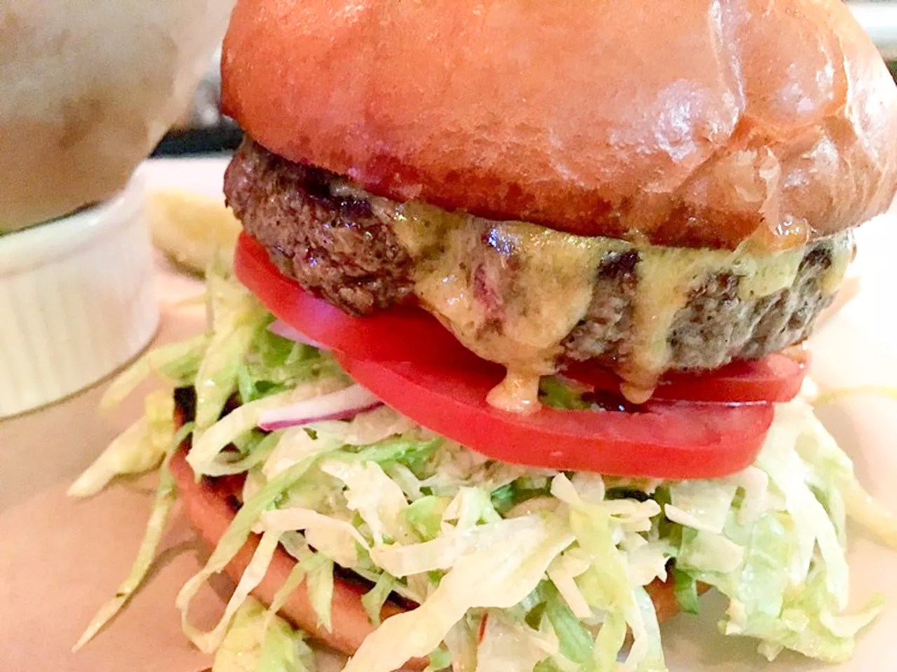 The cheeseburger at Desert Racer with added-on green chiles for $17 features a half-pound chuck and shoulder ground patty, shredded lettuce, onion and tomato.