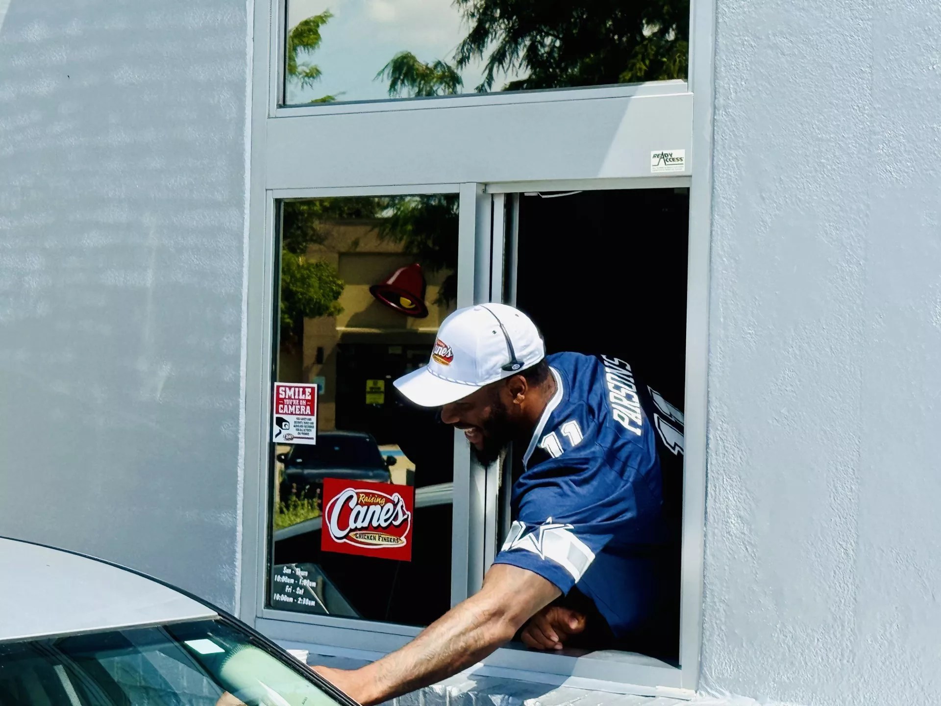 Giddy fans were treated to Parsons serving up orders of Raising Cane’s chicken fingers in the drive-thru (and at the counter), and he also took time to sign merch. As you would expect, his presence drew a crowd, complete with a line that stretched well outside the door.