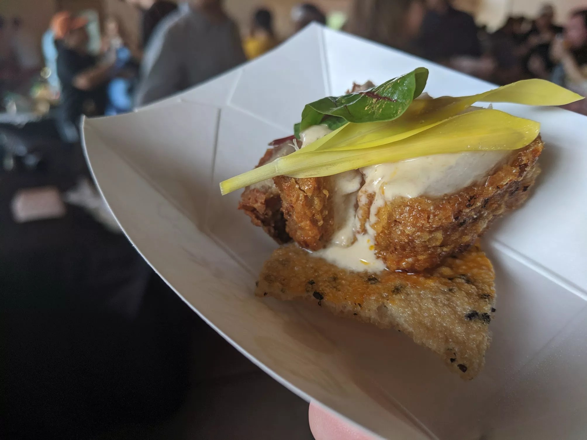 Filipino pop-up collective Not Your Lola’s brought big chunks of tender pork belly on sesame crackers.