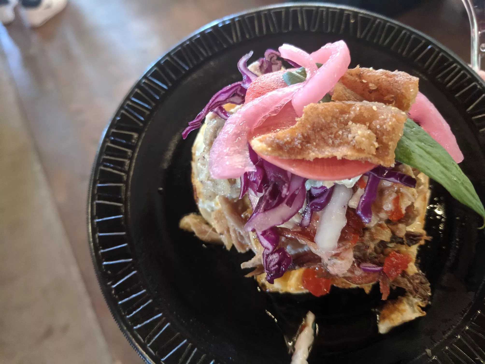 Sandwich Hag collaborated with Cattleack Barbeque on a big pile of whole hog with nuoc cham and pickled onions and radishes.