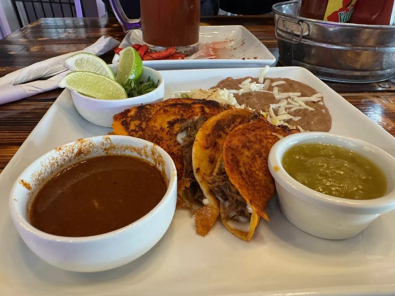 First, props on the customer service. From the moment we walked in until we left, everyone was super friendly. We opened with the michelada preparada ($15), which comes rimmed with three jumbo shrimp alongside seasoned cucumbers and Takis. We have a thing for good micheladas. The canned micheladas are serviceable, but nothing beats a homemade michelada when it’s done right. These at La Toxica, which use a daily house-made mix, are legit.