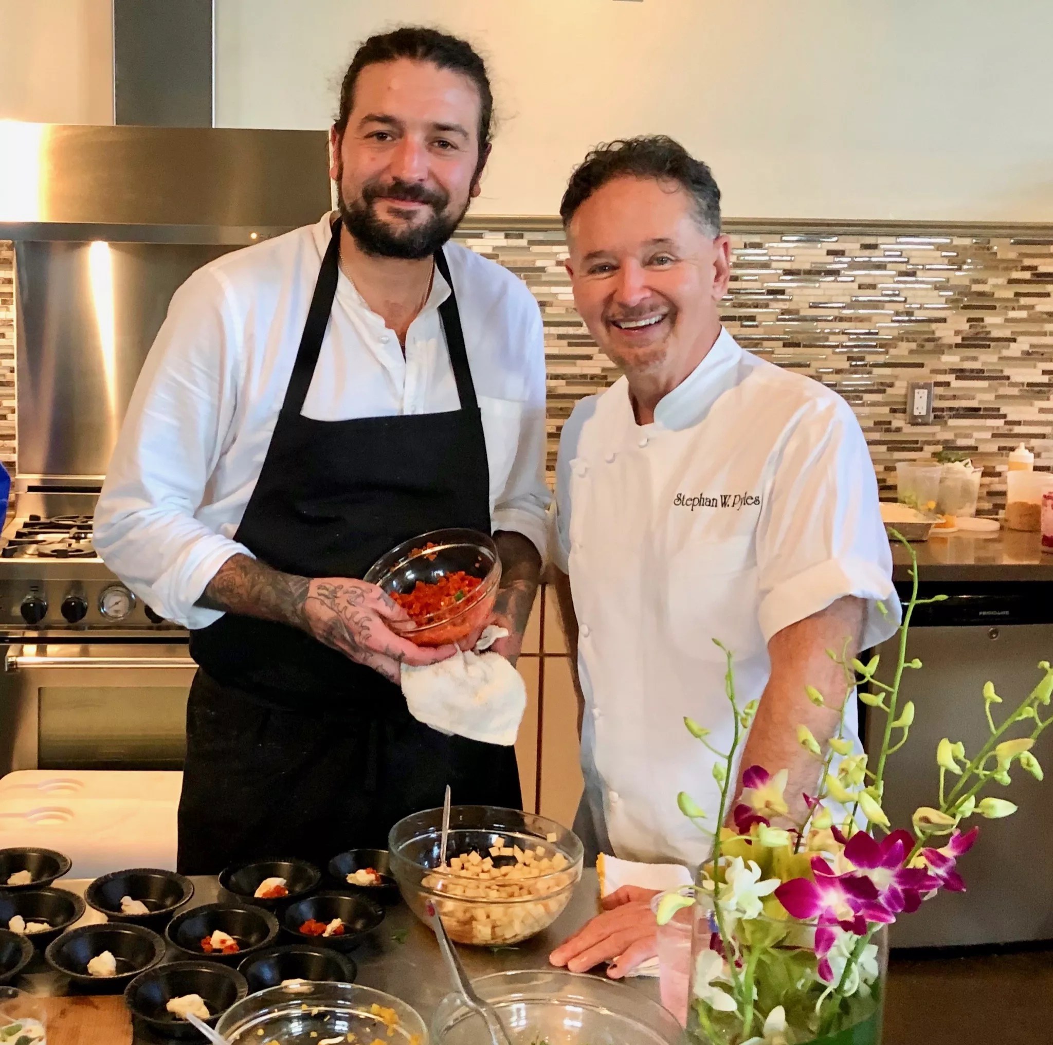 Chefs Stephan Pyles (right) and Ross Demers (left) at The Giving Table’s benefit for Josh Bonee