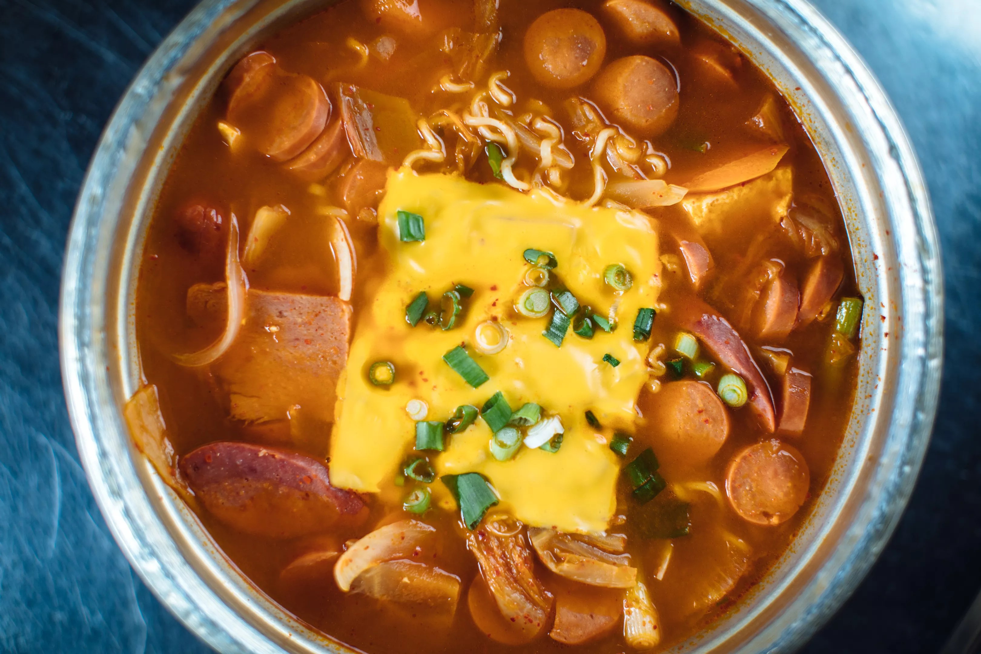 In typical Ddong Ggo style, the Korean Army Stew comes topped with a melty blanket of cheese.