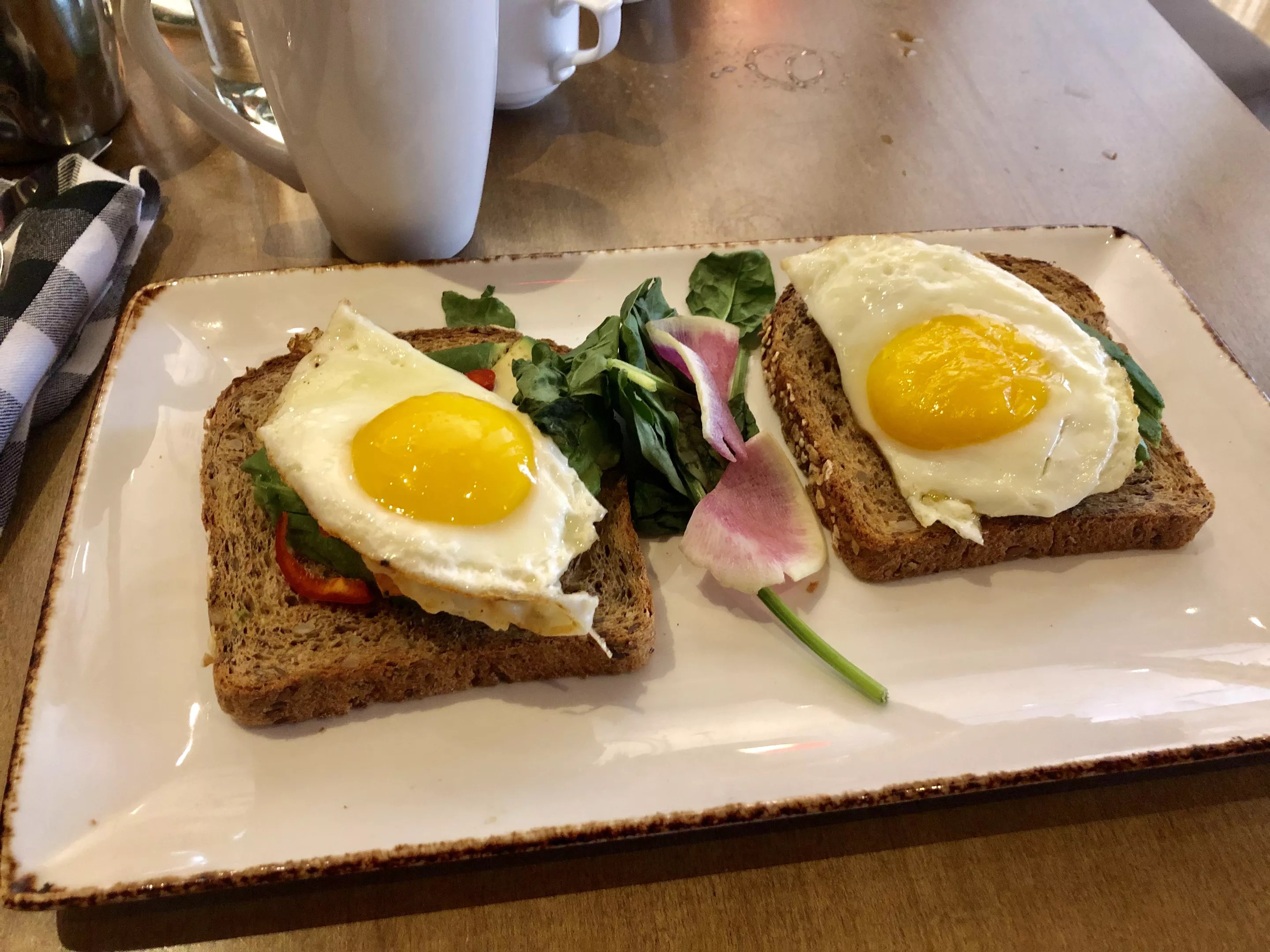 A millennial at the table ordered avocado toast. The sliced avocado, sunny egg and Fresno chili came on top of hippie bread. You don’t need to try it to know what that tastes like. But it did make some of us think how much better the avocado toast is just a couple of doors down at Ascension Coffee.