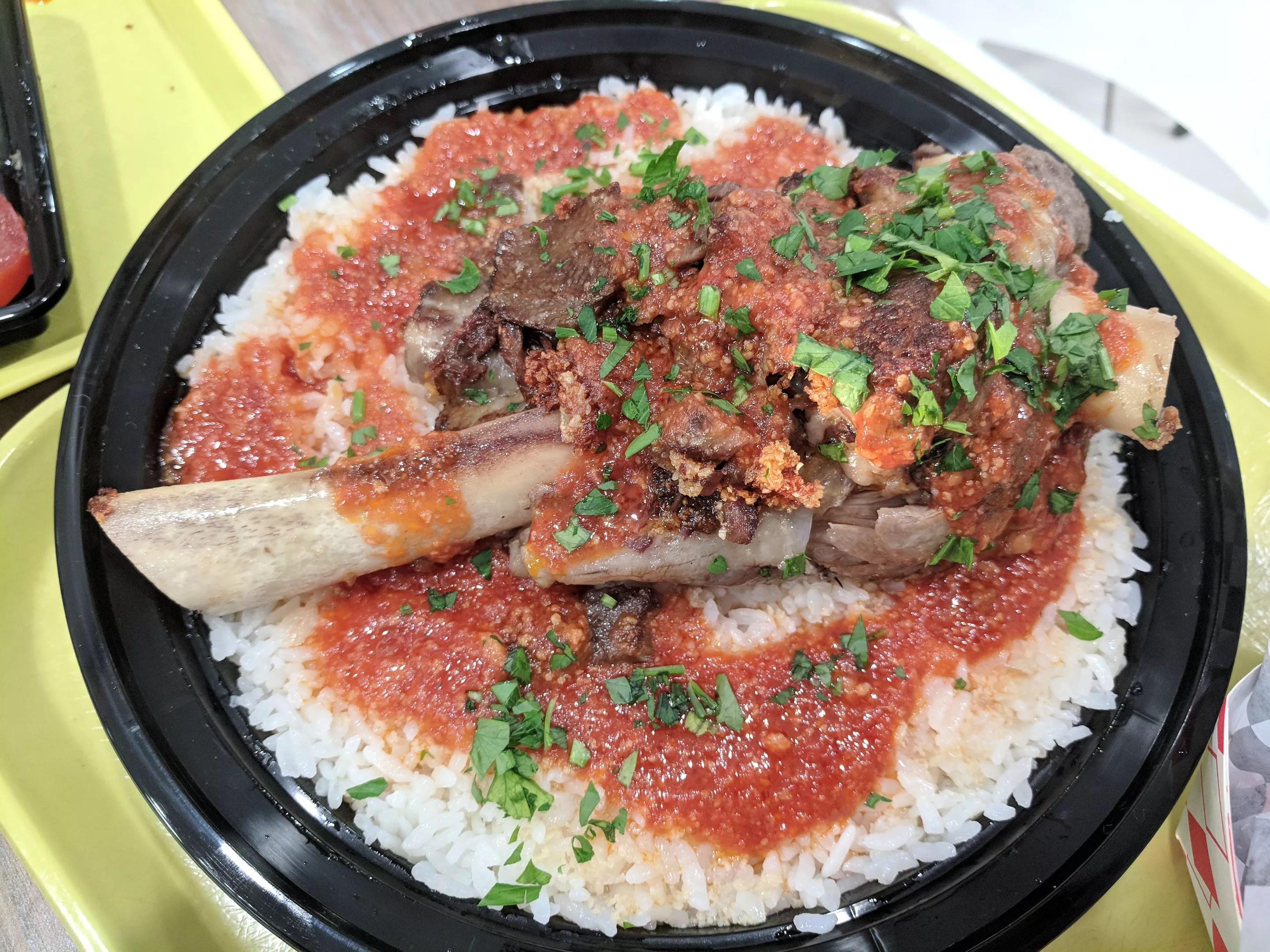 Elhouni has added new features to her menu since the early days, of which the most eye-catching is fattah ($15), a fork-tender lamb shank served on a bed of soft rice. If the lamb wasn’t sumptuous enough already, a well-spiced tomato sauce tops it off, along with a showering of parsley. Fattah translates literally to crumbs or, perhaps, croutons, hinting at the layer of pita bread concealed at the bottom of the plate, soaking up sauce and meat juices. Along with koshari, fattah can be the centerpiece of a feast.