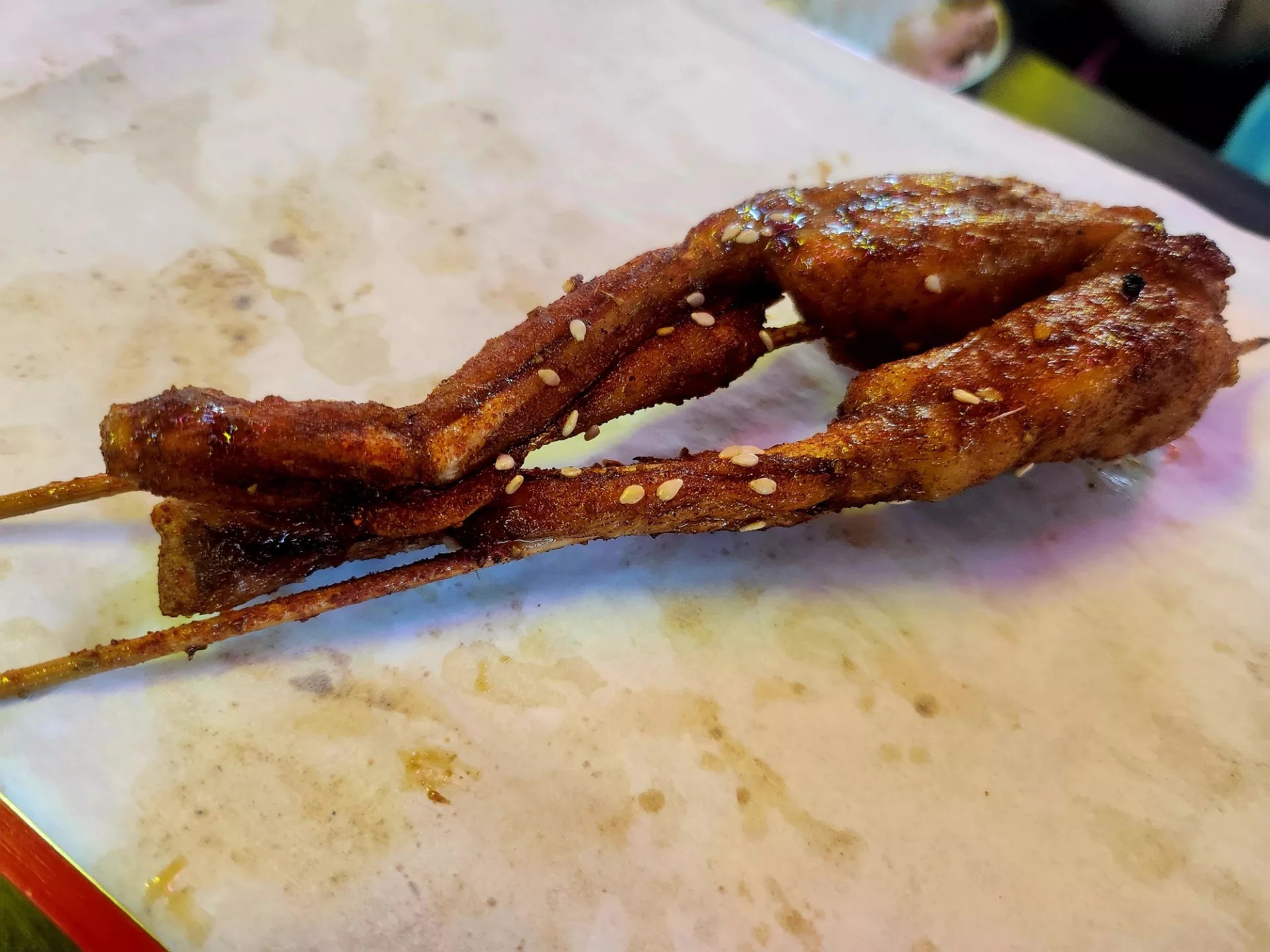 Next up were grilled bullfrog legs. Now this, we could get behind. These were nicely seasoned and grilled. For those who haven’t tried frog legs, they taste like a cross of chicken and mild fish, leaning slightly more towards the chicken side.