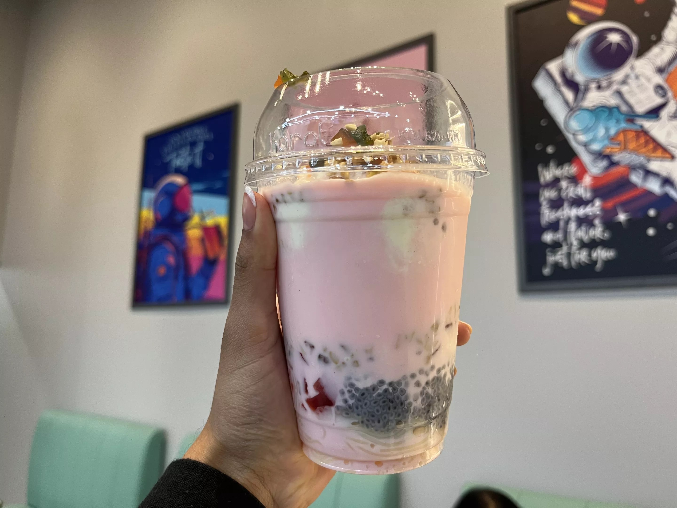 The small astronaut logo at the front beckons from across the parking lot, inviting customers into a brightly lit dining room adorned with lounge chairs and astronaut-themed trinkets. A velvet rope and unlimited sampling opportunities both add a VIP element to the experience. Prices are on the higher end, yes. But we think it’s worth it for a sample of the bold ice cream flavors of the Indian subcontinent.