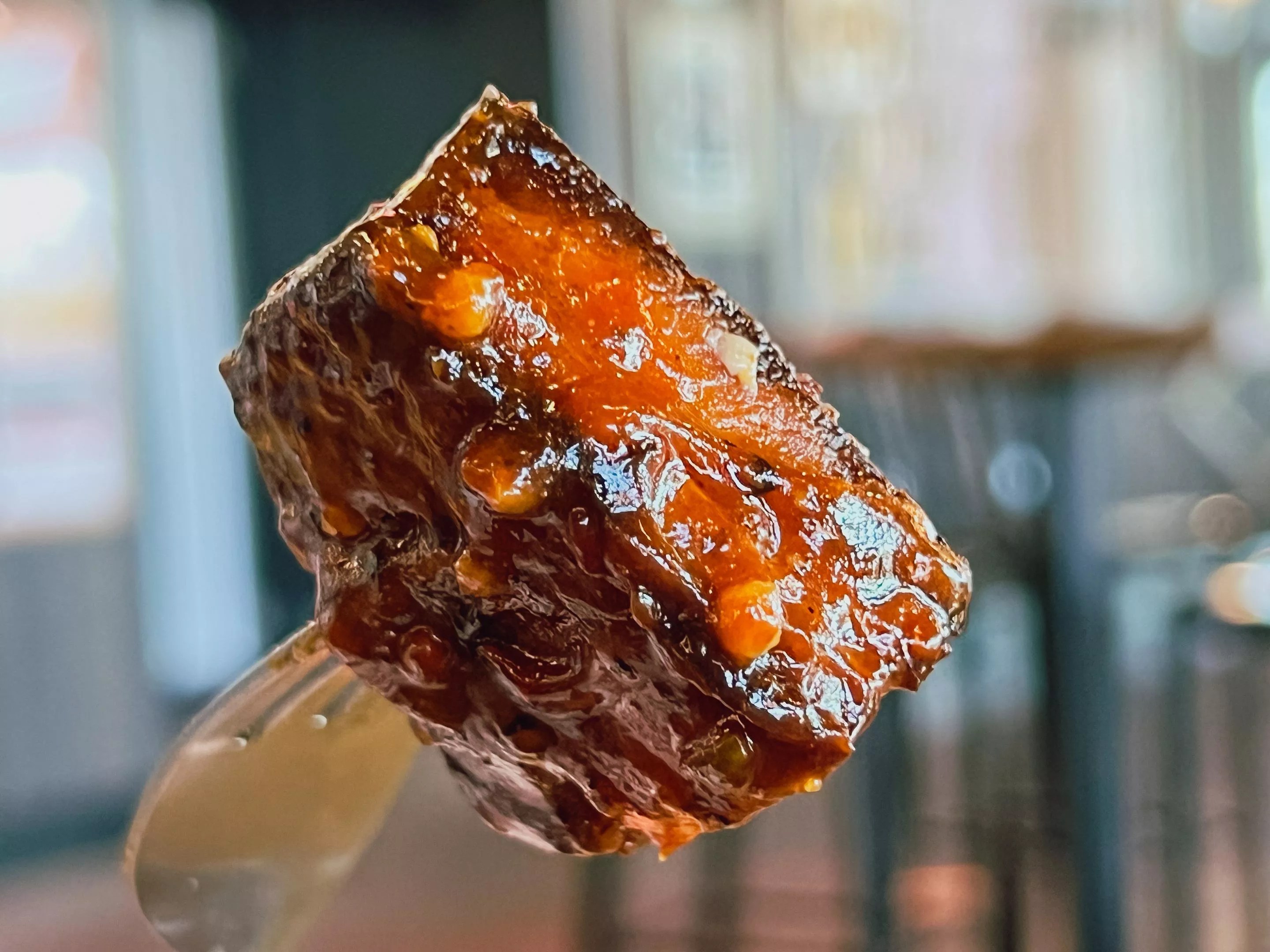 At first glance, the brisket Philly ($12) looks a lot like a regular chopped brisket sandwich presented on a round bun. We’d love to see a hoagie roll in place of the bun, but that may be the sandwich’s only misstep. Between the buns is a heaping serving of chopped prime brisket, bulging out of the buns. Charred poblano peppers and onions are sliced and tossed in, then a slab of cheese is melted on top of the concoction. We appreciated that copious amounts of brisket bark were included in the sandwich, and the poblanos give a subtle kick and crunch. The sandwich is a banger, even without the hoagie.