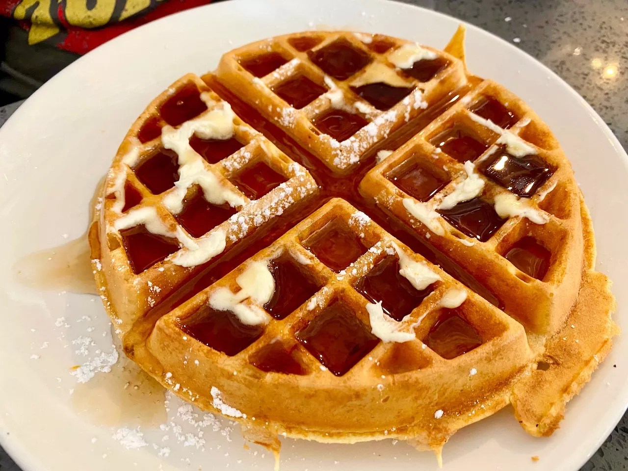 The dining room at the Allen location has high ceilings, a bright aesthetic and fun and quirky decor. On weekends, it may appear to be a feat to dine in with a full house in swing. Not to worry though; the service is efficientt and the wait for a table isn’t long. It’s tough to choose a favorite between the pancakes and waffles. Felicia Lopez