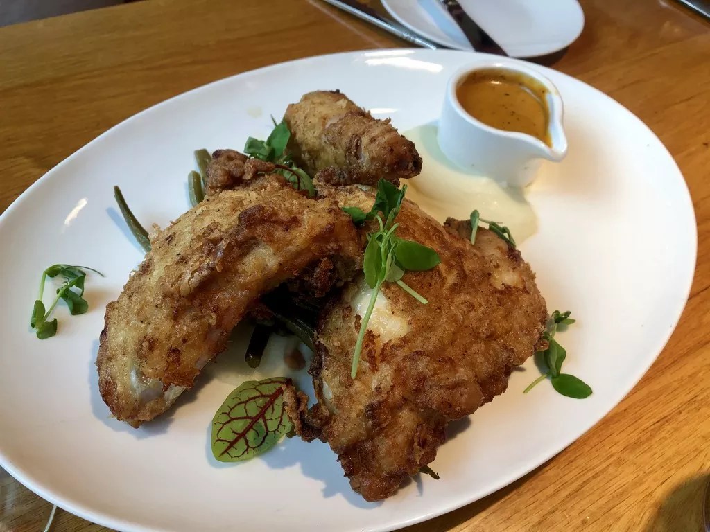 That’s where the gravy comes in. The smoked tomato gravy comes in a small dish, but even a little bit will give you a savory taste and more. It was good on the chicken and on the creamy whipped potatoes that come on the plate. It was even pretty incredible on a bit of the cornbread.