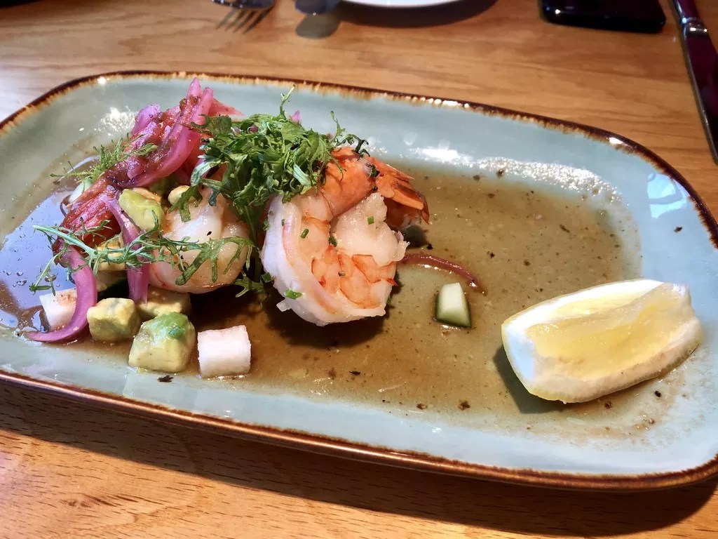 The poached jumbo prawn “michelada” cocktail was worth sharing. It’s served with avocado jicama pickled red onion relish and cilantro-crema.