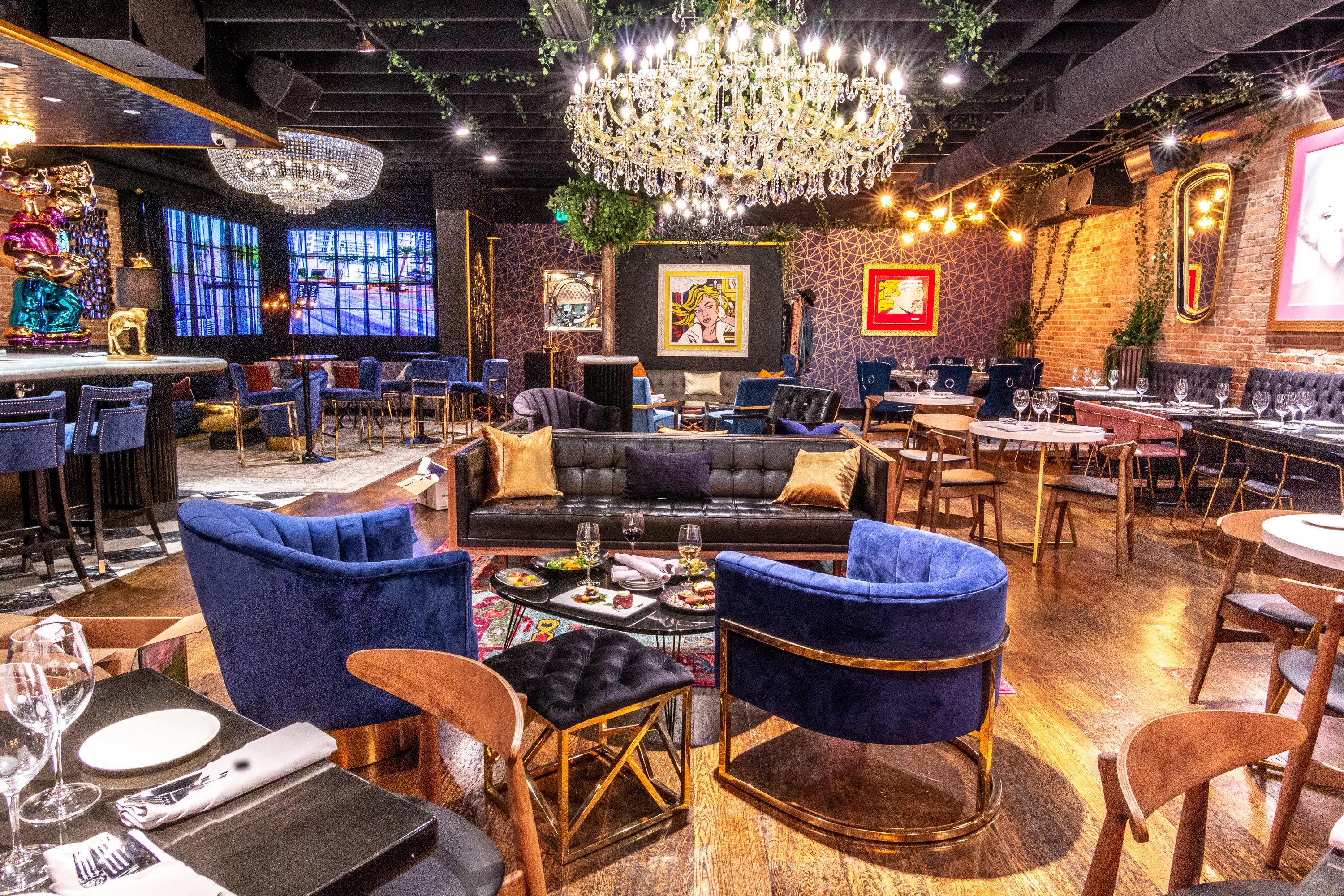 What does this dynamic team have on tap for their loyal patrons? A visual feast. Open the doors and take a step back in time. The mid-century modern space offers a whimsical mix of plush décor – velvet chairs, ivy festooning the walls, crystal chandeliers and pop art pieces from some of the shakers from the ’60s including Roy Lichtenstein and Jeff Koons. Enjoy an opulent evening, dining next to your new best friends Marilyn Monroe, Audrey Hepburn or Popeye the Sailor Man. Oh, if those walls could talk…