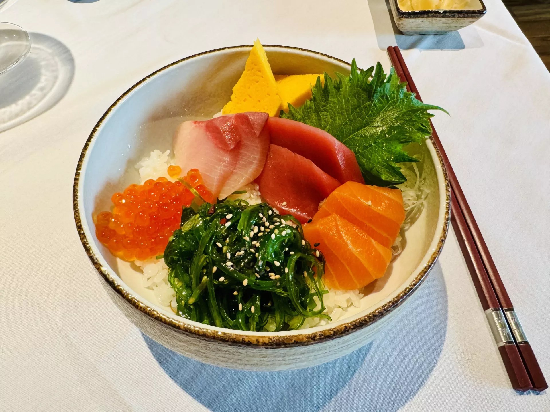 Our final dish (again off the lunch menu) was Chirashizushi ($25), six pieces of assorted sashimi (chef’s choice) over rice. We went with salmon, tuna, sweet egg, yellowtail, salmon roe and seaweed salad. Going off our lone experience, the sushi at Feng Shui is absolutely pristine and could hold its own with just about any sushi spot in town.
