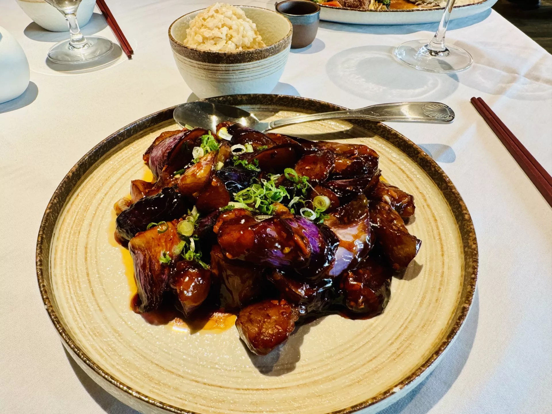 We pondered the Three Cultures Sampler appetizer for a tour of tastes, but instead landed on stir-fried eggplant in Szechuan garlic sauce ($18) off of the dinner menu. If you like eggplant, you’ll be hard-pressed to find a better eggplant dish anywhere: slightly sweet, savory and with a subtle punch of heat on the finish.