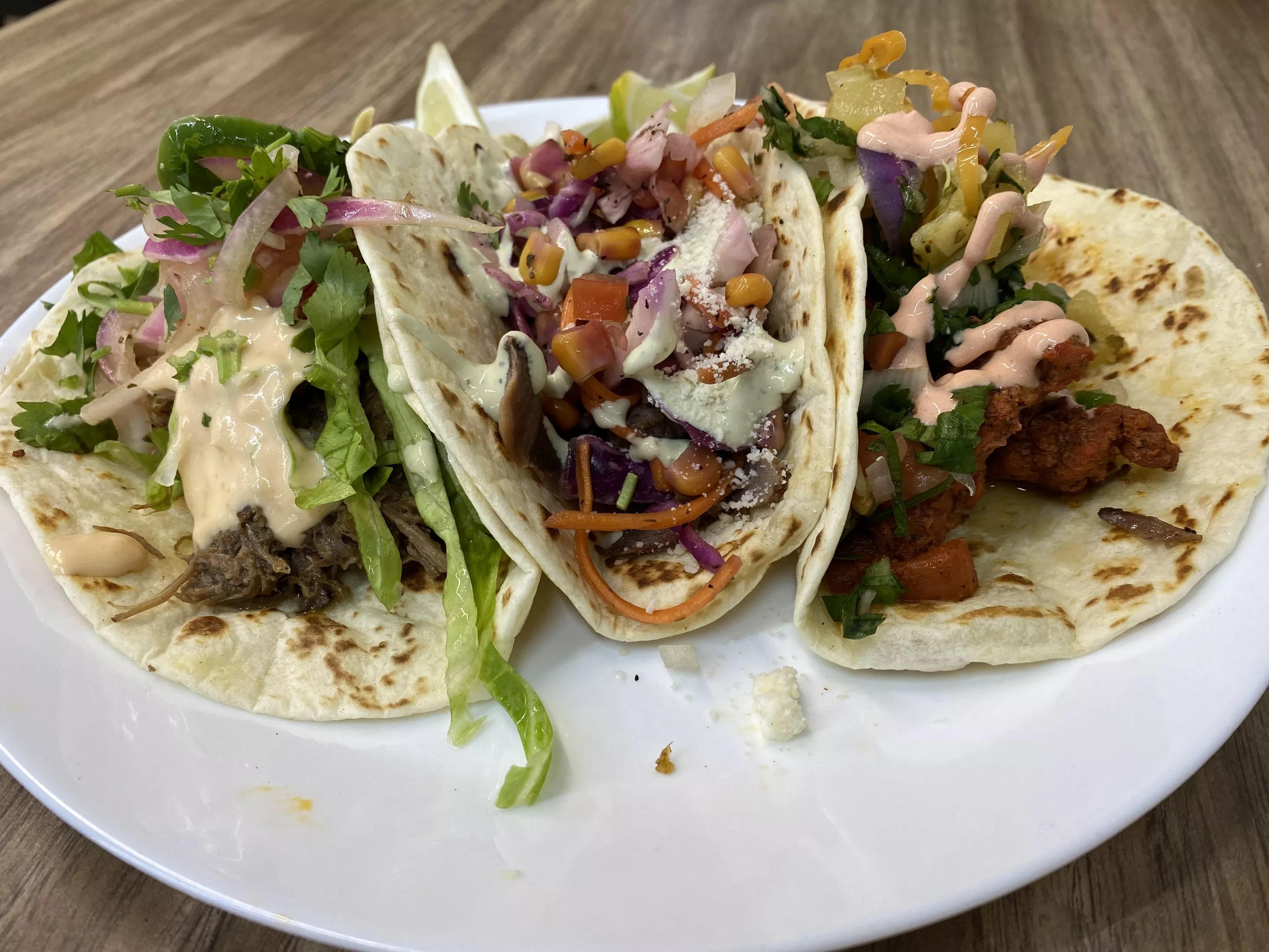Specialty tacos, which Fuentes refers to as the Tres Amigos, include the El Borracho served with your choice of protein on a 6-inch flour tortilla with sweet pineapple habaneros, guajillo crema, pico de gallo and roasted corn. The El Guapo comes with protein, pickled cabbage, avocado crema, cotija cheese and fresh jalapeños. The Latin Lover finishes this trio with your choice of protein, lettuce, tomatoes, cilantro, queso sauce, cream and pickled red onions.