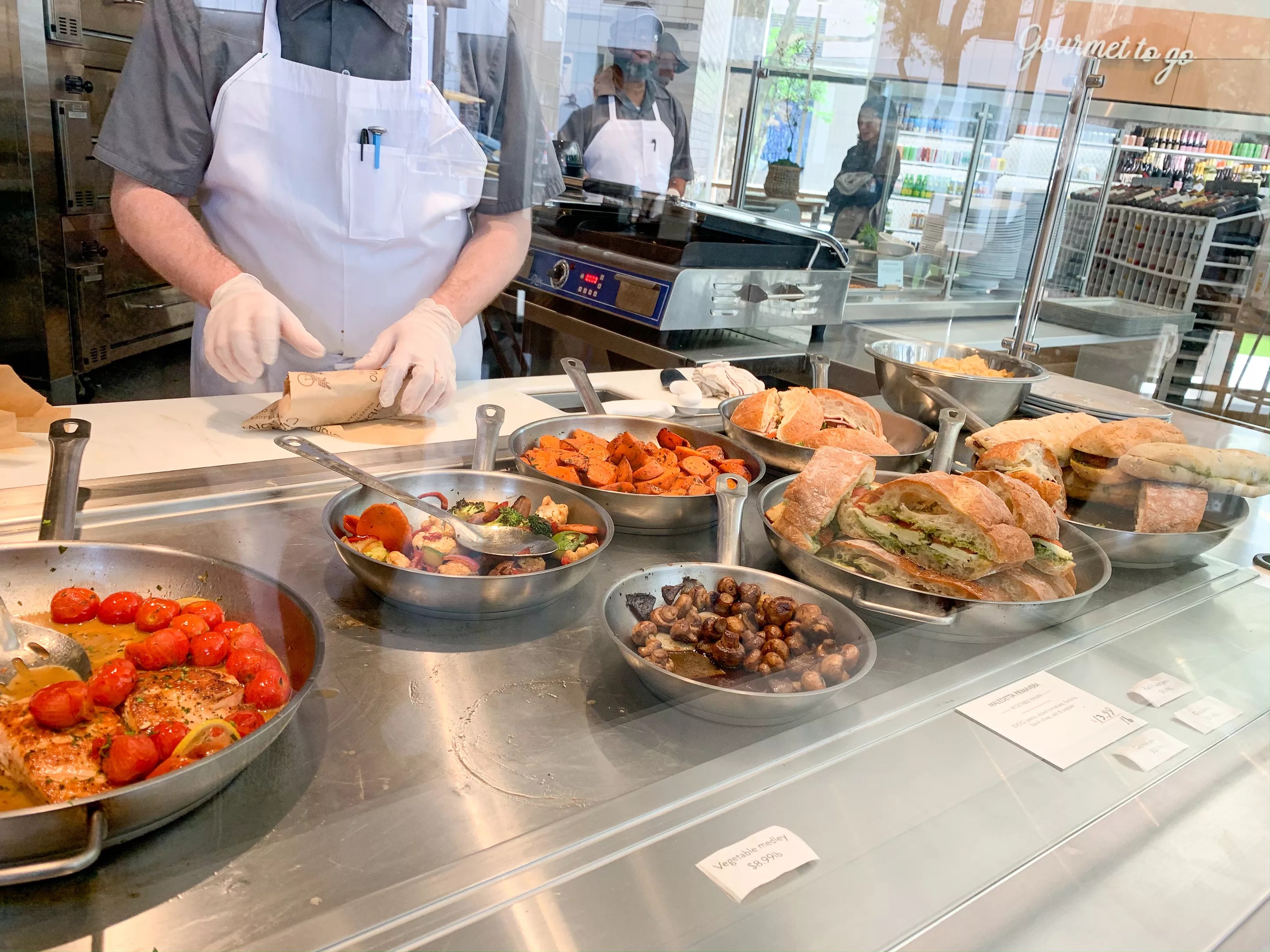 You pick what you want, it’s placed on a plate or in a to-go container, then weighed.