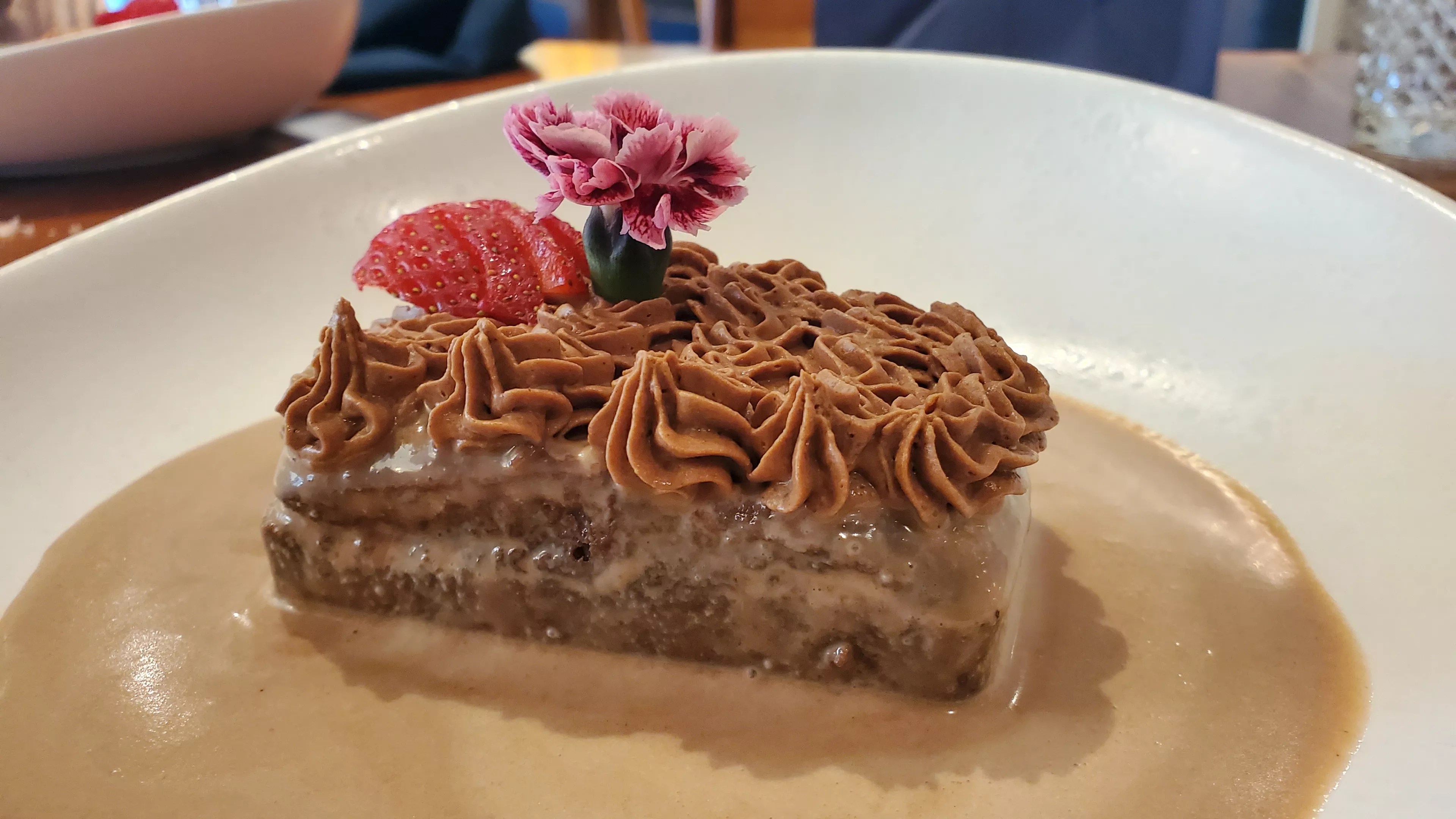 Deciding between the chocolate tres leches cake or the chef’s “award-winning dessert” (Rosa Mexicano) per the menu was a challenge. Ultimately, we went with the chocolate cake ($9), which is made with the famous Mexican hot chocolate brand Abuelita. Although the secret ingredient wasn’t mentioned on the menu, we could taste the familiar and delightful combination of Abuelita’s cinnamon hot chocolate.