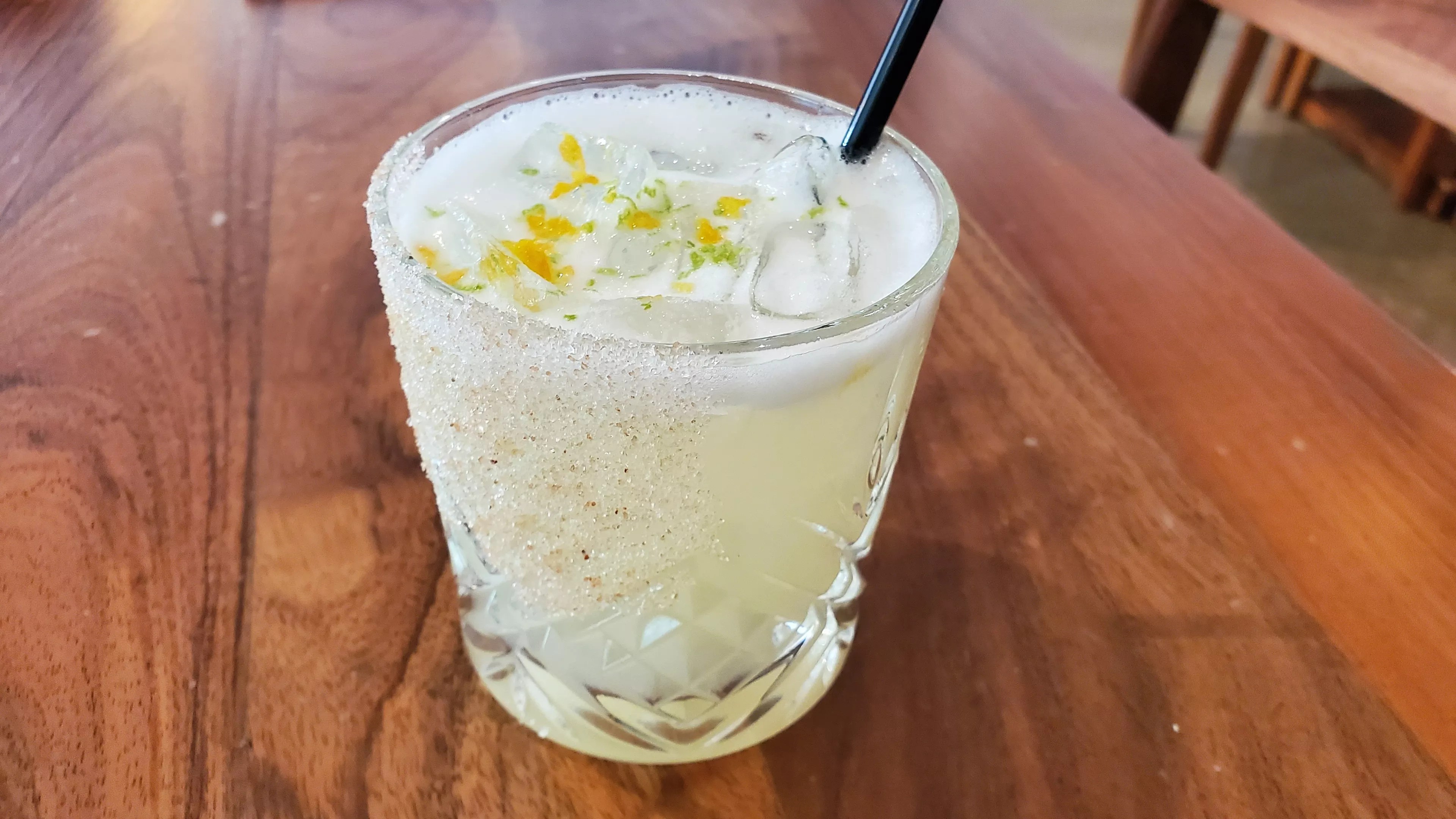 The house margarita is made with an egg white base.