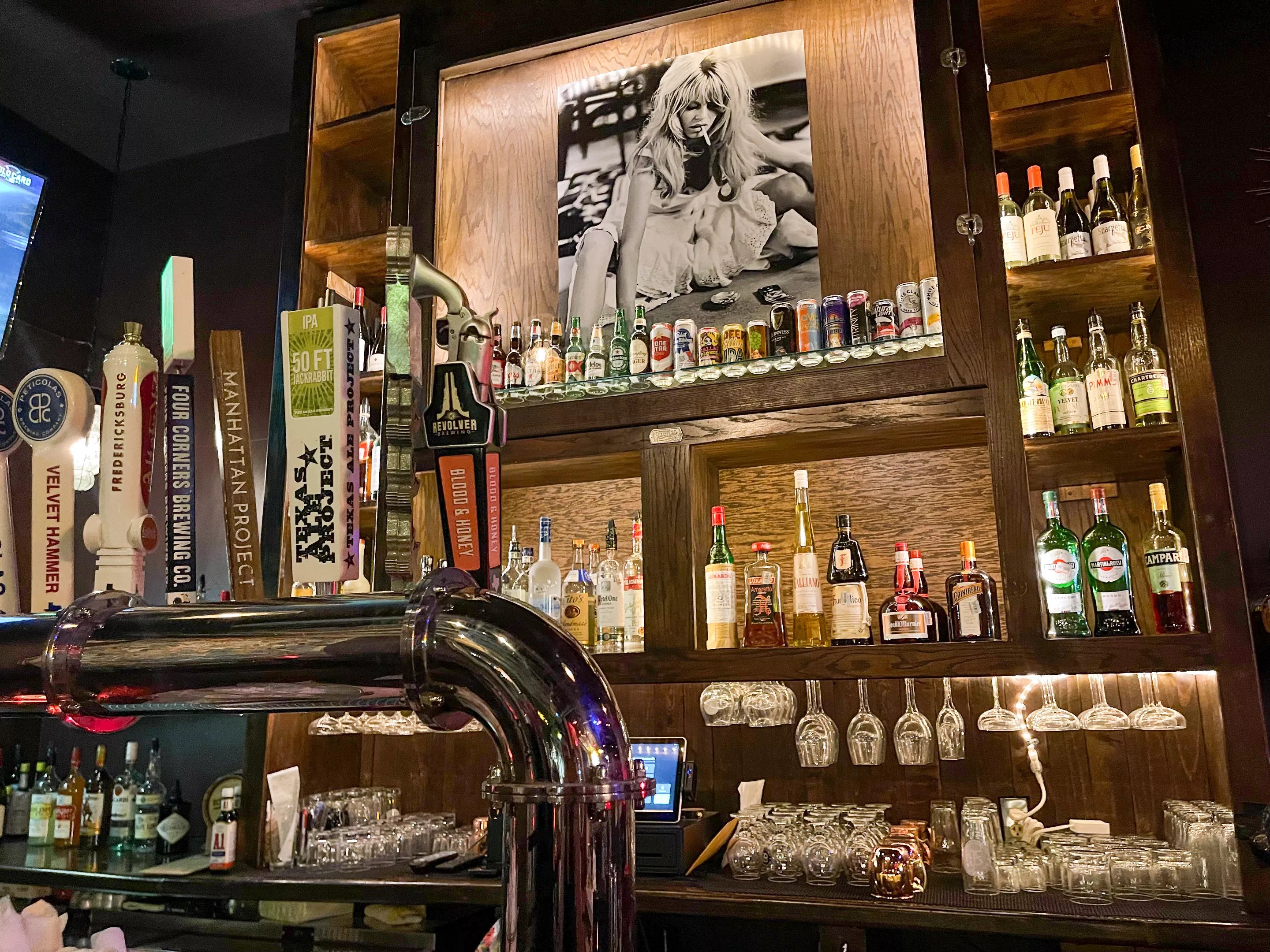 There’s wine, too – three options for white, three options for room-temperature red. (And, as we learned, if someone in your party wants rosé, they can’t get it here.) But the bartender did polish our glasses before pouring a Manhattan and wine into them. Beers on tap include Peticolas, so someone here has good taste.