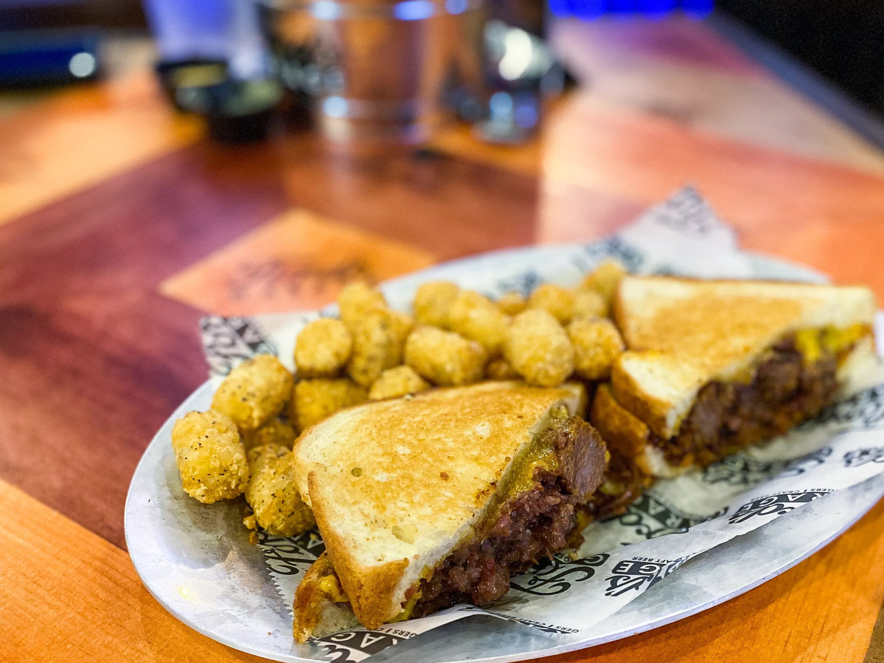 Our second sandwich was a smoked brisket burnt ends melt, which is prepared with burnt ends caramelized in a bourbon barbecue sauce with sharp cheddar and bacon jam on toast. This was also … OK. It tasted fine but did not resemble what one comes to expect from brisket burnt ends and instead was more akin to a chopped beef sandwich. Again, it wasn’t bad but also wasn’t particularly noteworthy. The tater tots that came along with it, however, were good and nicely seasoned.
