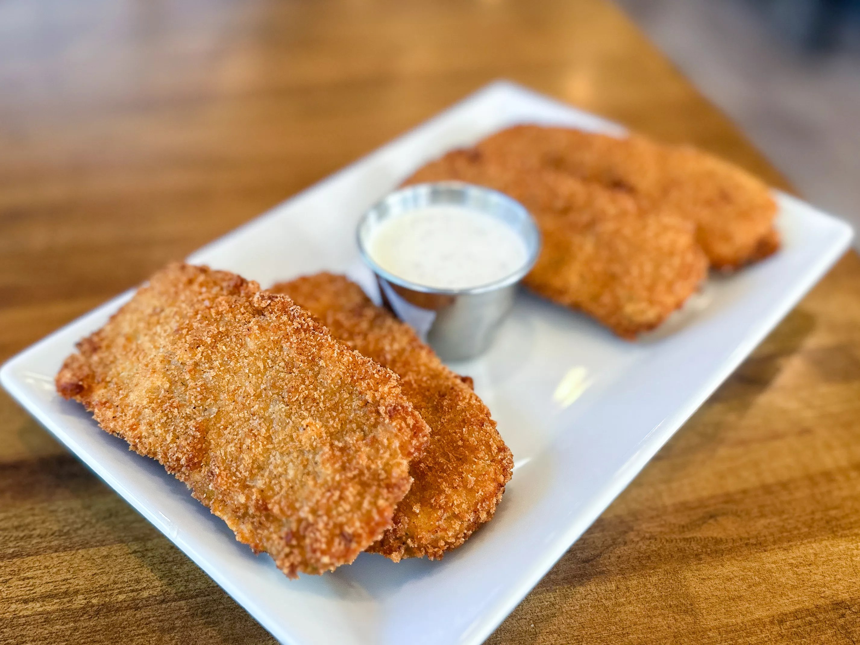Four large slices of fried zucchini come in an order.