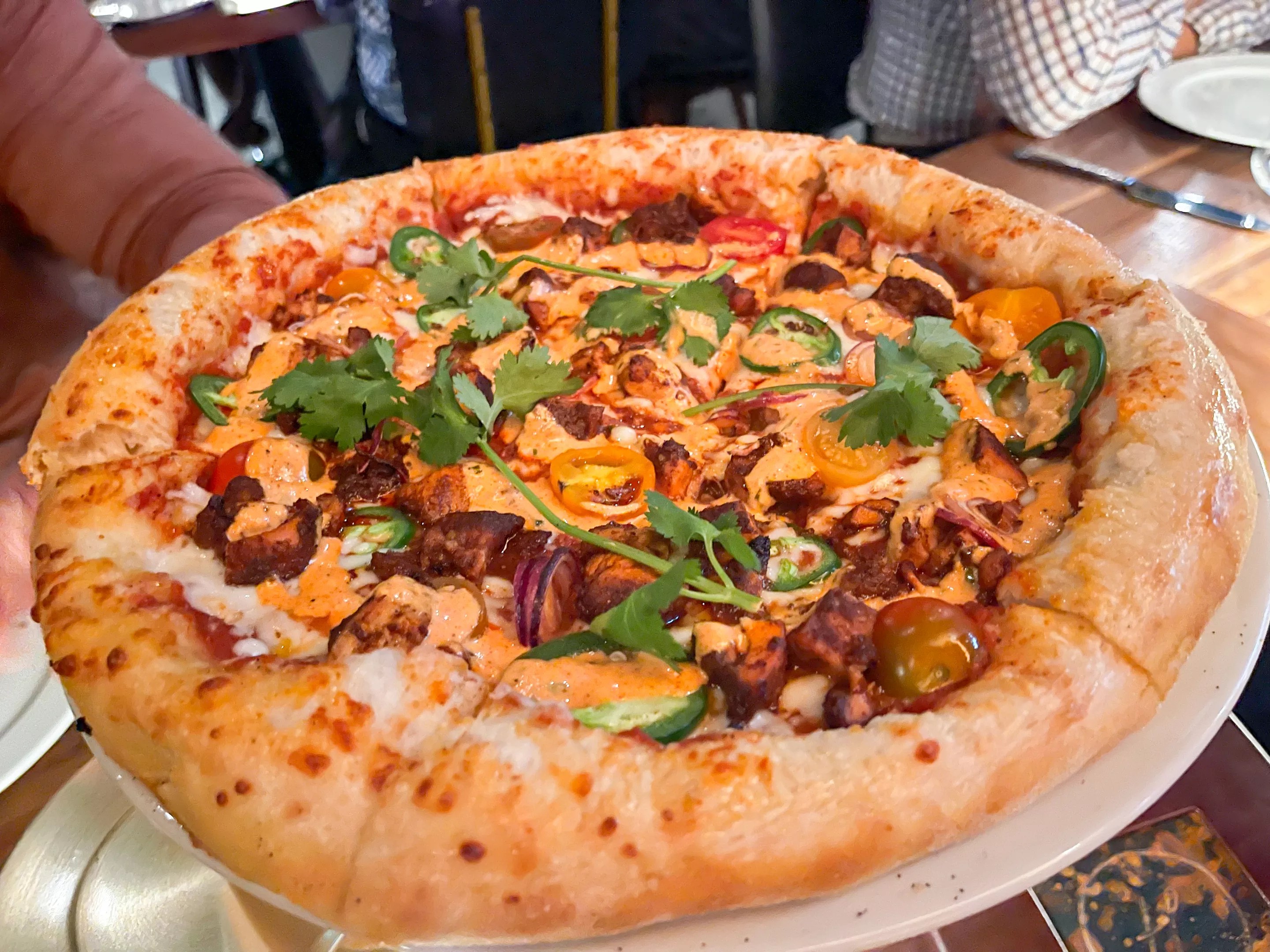 The star of the night was the pizza: A thick, bouncy, flavorful crust lays the foundation for success with any choice you go with. But the Bombay chicken tikka is one you should try ($22). A gently spicy tikka buttermilk dressing is topped with chicken, grape tomatoes, red onion and jalapeño. There’s a slight sweetness balanced by a little bite from the seedless slices of jalapeño. The combination will make you change your plan of having one slice to snagging another.