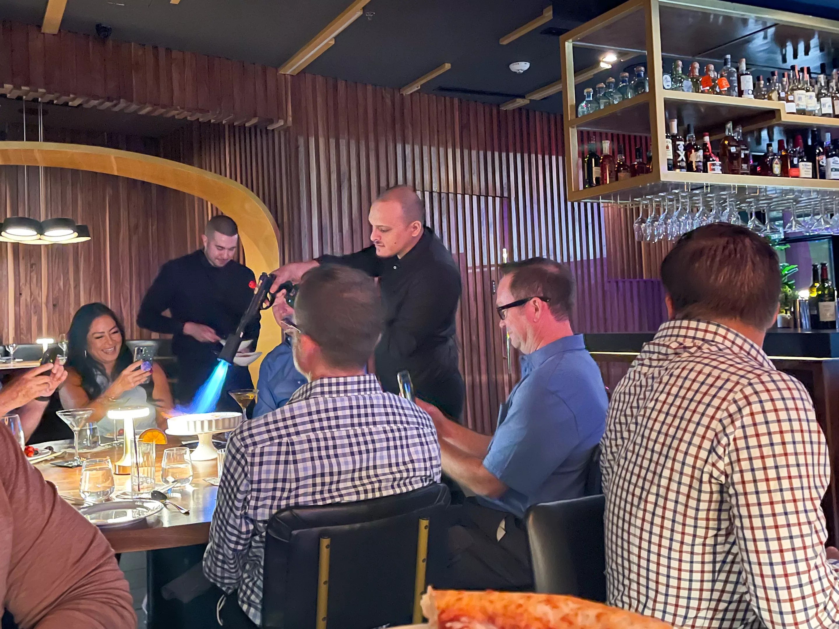 That flame over the passion fruit creme brûlée we saw earlier comes as large serving intended for two to four people, and could surely serve six in reality ($35). There’s also a beautiful looking chocolate cherry, with chocolate ganache, tart cherry compote and cherry blossom creme fraiche ($14). The perfect dessert: an espresso martini Taylor Adams
