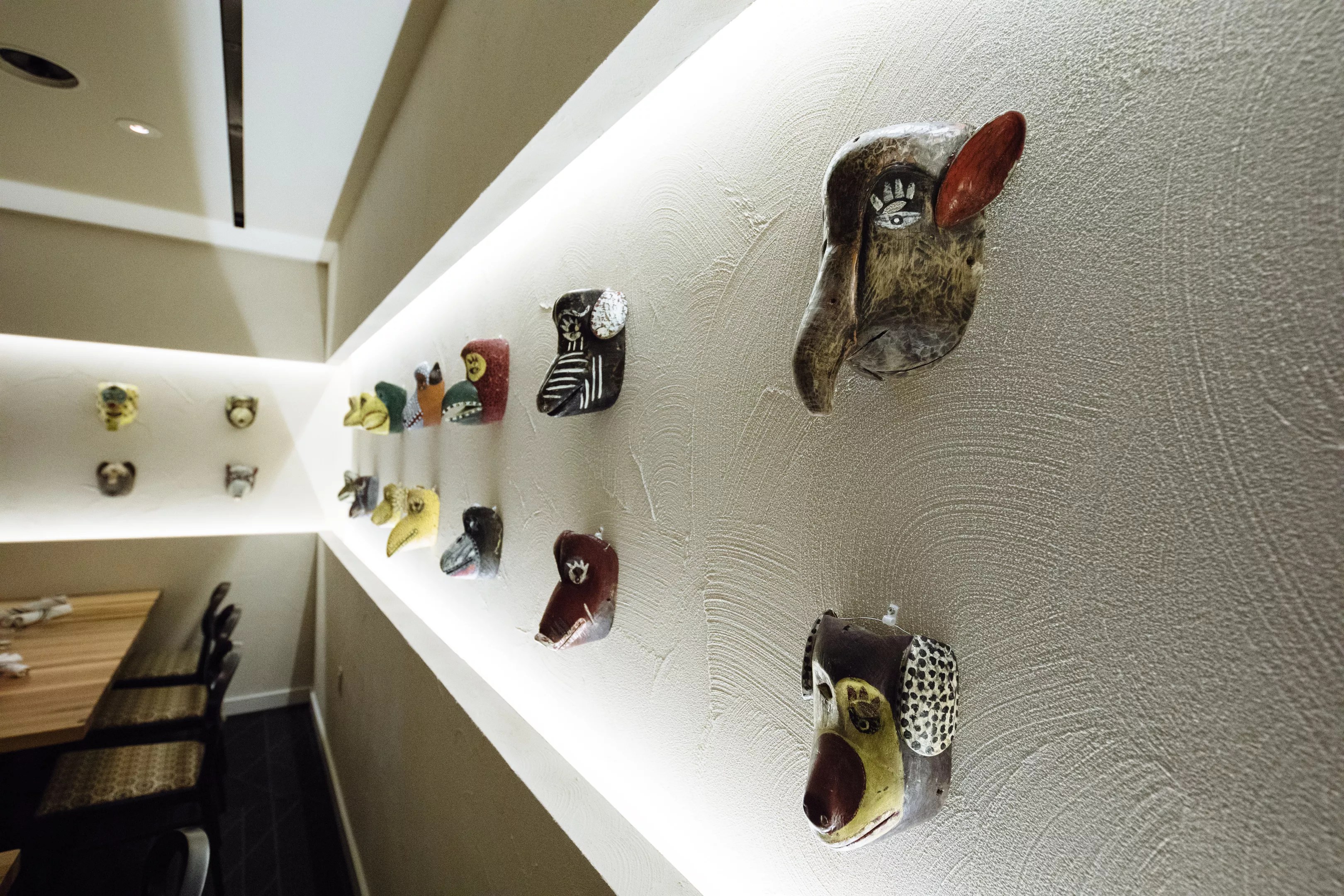 The final room at Jalisco Norte is the mask room. Tucked away as a private room or event room, it sometimes allows guests in to accommodate main seating area overflow. Hidden behind a large blackout curtain, the small, white room is lined with Mexican folk art masks. A recessed light strip that lights the masks further accentuates the room’s eerie, museum-like aspect. It only seats about a dozen, but if you’re into that Game of Thrones Hall of Faces kind of vibe, you’ll dig it.