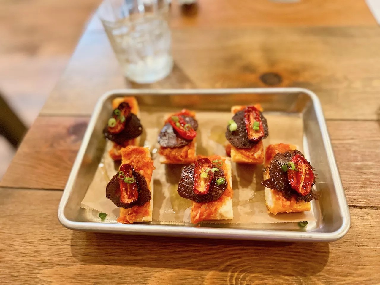 On the night we checked them out, they had added a few new items to the menu, so we went that route not knowing how long these dishes would be available. We started with pan con tomate y ajo ($9), which is six toasted baguettes with tomato, garlic, paprika and queso asadero. The delicious roasted tomato tops off the appetizer perfectly.