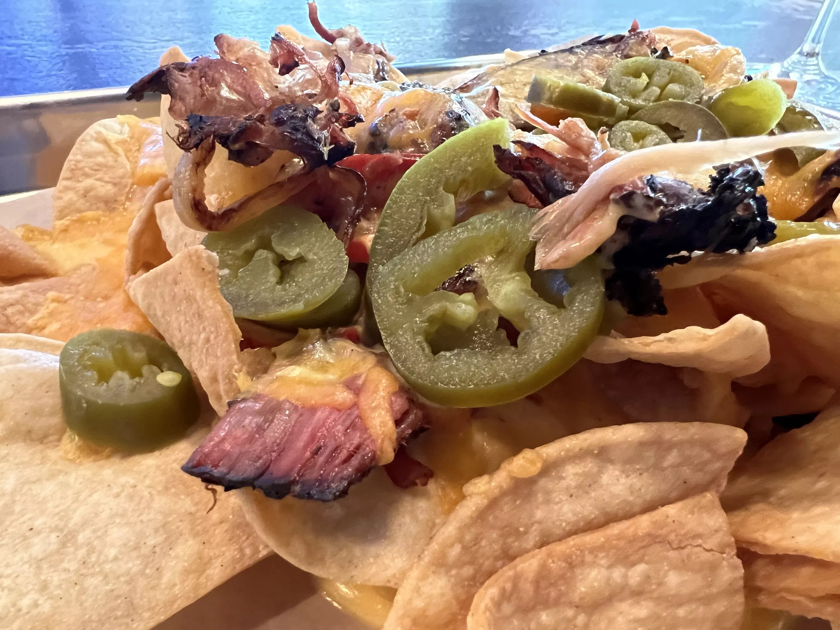 Lest you think the games and the bar are gimmicks, rest assured that OAK’D still has a strong barbecue game, too. We popped in just before the end of the daily happy hour from 4 to 7 p.m., so we were able to get a tray of tasty nachos topped with pulled pork for just 10 bucks, available at the bar only. There’s plenty of cheese, bell peppers, jalapeños and succulent pork for two people to share, and the tortilla chips are sturdy enough to hold up to the load of toppings. And OAK’D’s bar is a full-service model, so whether it’s beer, wine or liquor that strikes your adult beverage fancy, the bar staff has you covered.